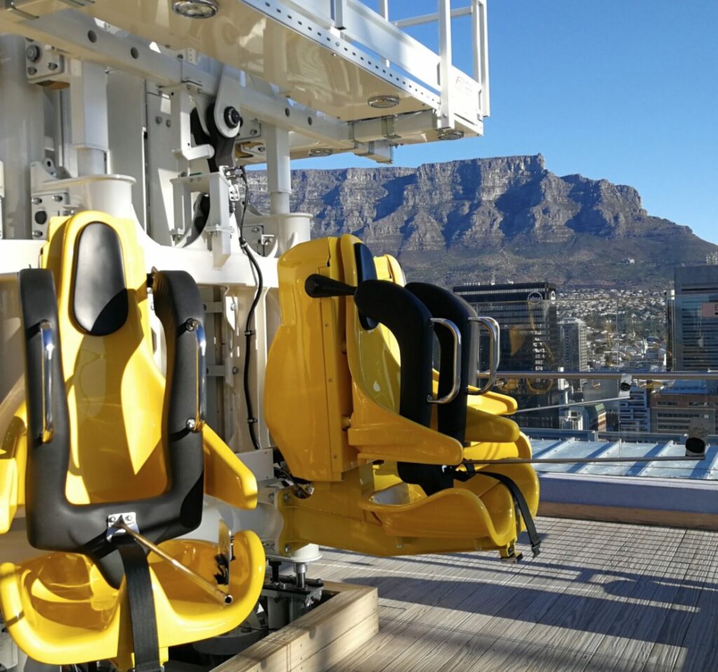 But the piรจce de resistance is definitely the gravity-defying Sky-Hi Ride on the roof. Get into one of the chairs of the 35m-high thrill ride and slowly get hoisted into the air before plunging down again at 100km/h and almost 4Gโs.ย The ride gives you a birdโs eye view of one of the most beautiful cities in the World and is one of only three in the world and the first of its kind in Africa.ย