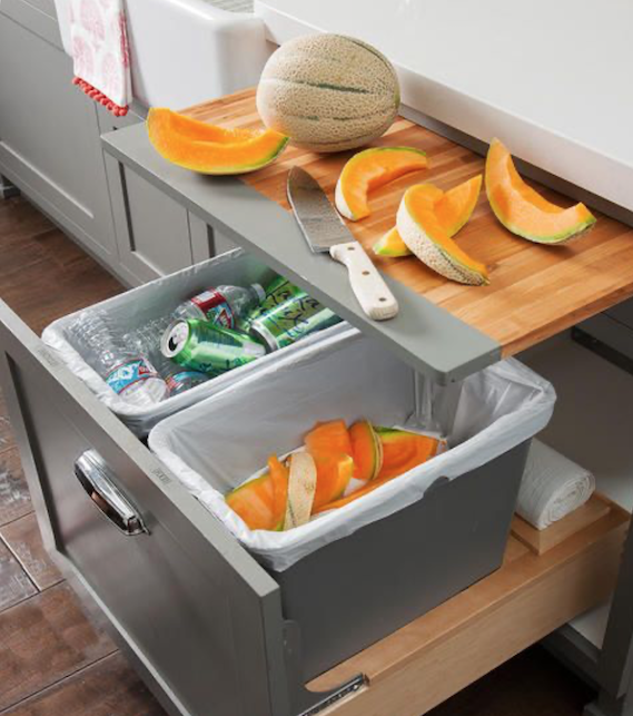 A Pull-Out cutting board above the bin