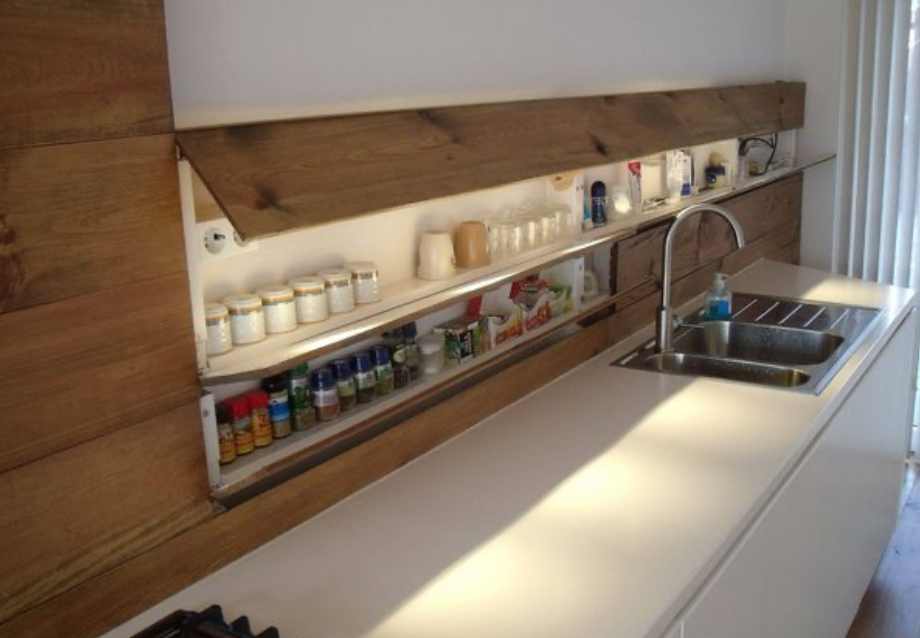If counter clutter irks you, chances are you want to tuck spices, oils, and other cooking supplies away in a cupboard. However, these items get used so frequently, so it’s a pain to have to dig them out regularly. The solution? These awesome hidden compartments behind the counter, which blend in perfectly with the backsplash. Now you see ’em, now you don’t.