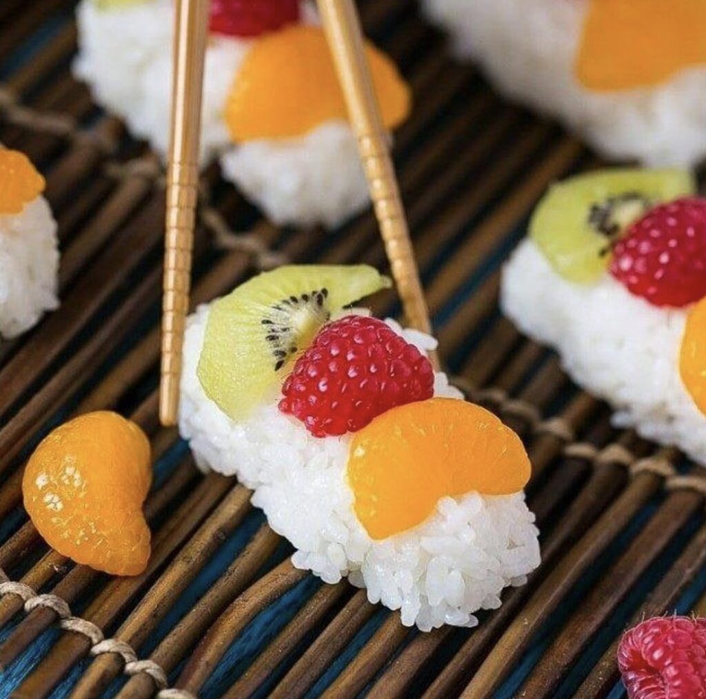 Traditionally, sushi consists of rice, seaweed, vegetables and raw fish, but fruit sushi is a slightly sweeter take on the Japanese cuisine. There is also a lot of room for experimentation with different fruit combinations. The most popular are strawberries, mango, peaches, grapes and apples, but you can change this up to include your favourites. Instead of a sweet and sour or spicy dipping sauce, you can make a more complimentary version with pomegranate juice, freshly squeezed lime juice and freshly squeezed orange juice.