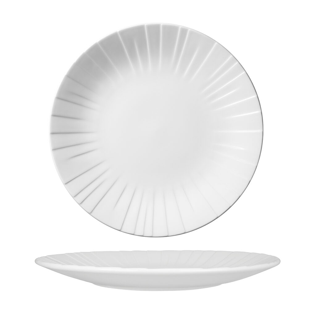 Alina combines two strong and complimentary aesthetics; The simplicity, linearity and restraint of Japanese design coupled with an easy-going, approachable, and casual style that embodies the Scandinavian way of life. The Alina embossment draws the eye towards the centre of the piece, giving gravitas and focus to Chef?s creativity. Alina delivers an interplay of light and line which provides a relaxed and contemporary platform for banqueting and upscale dining.