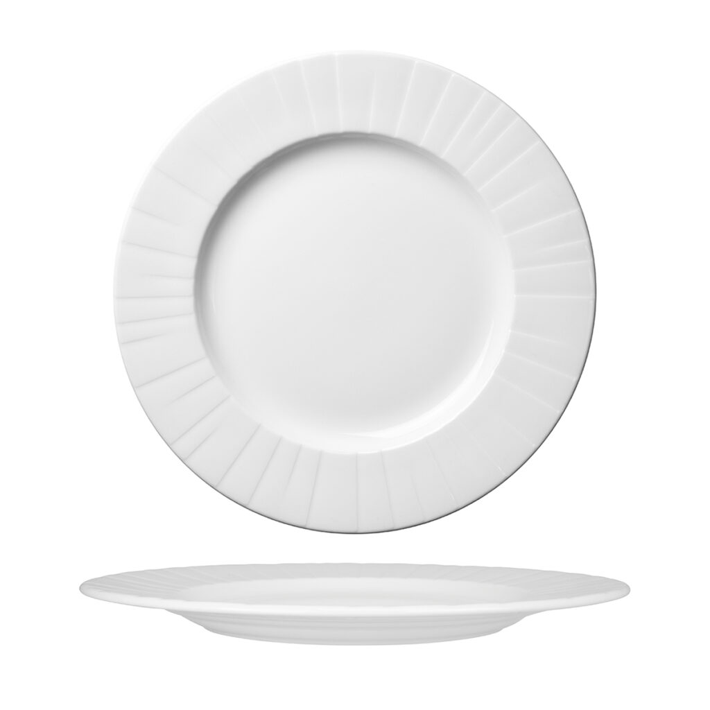 Alina combines two strong and complimentary aesthetics; The simplicity, linearity and restraint of Japanese design coupled with an easy-going, approachable, and casual style that embodies the Scandinavian way of life. The Alina embossment draws the eye towards the centre of the piece, giving gravitas and focus to Chef?s creativity. Alina delivers an interplay of light and line which provides a relaxed and contemporary platform for banqueting and upscale dining.