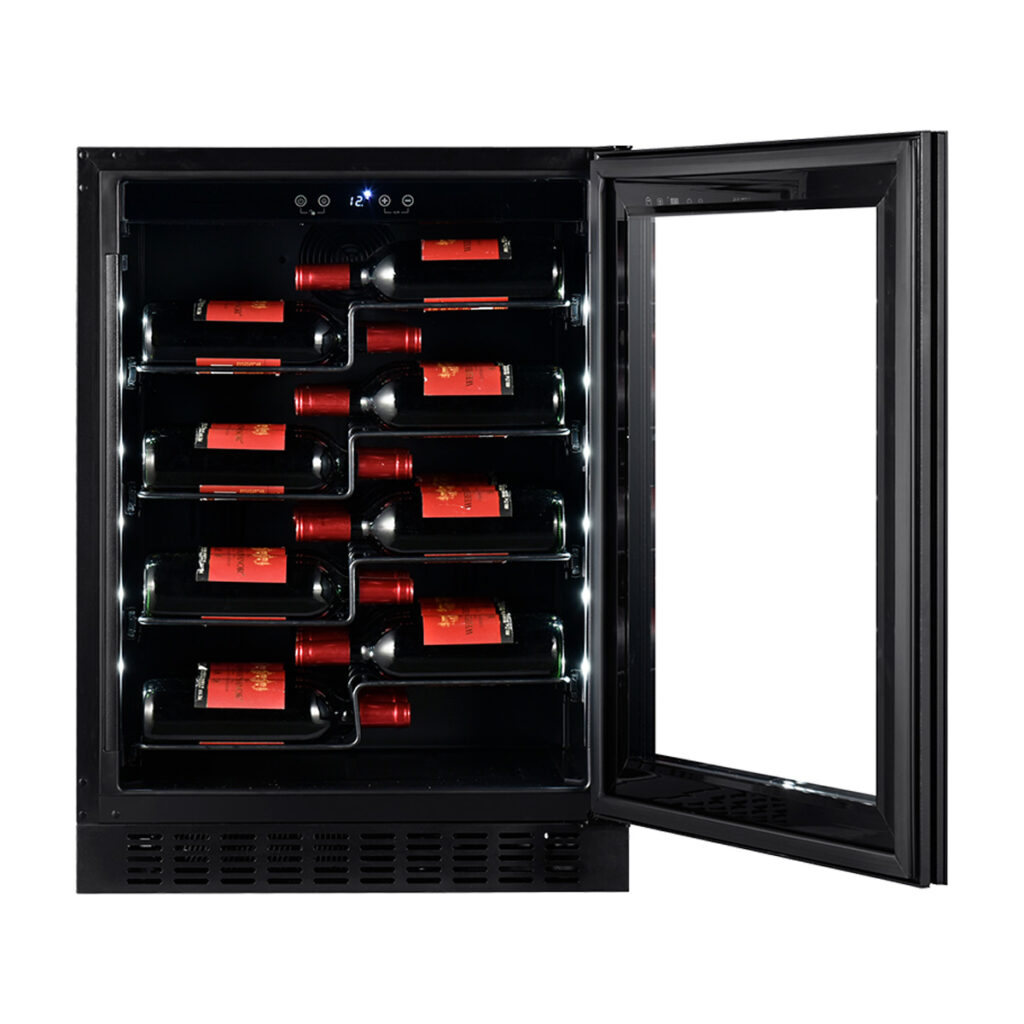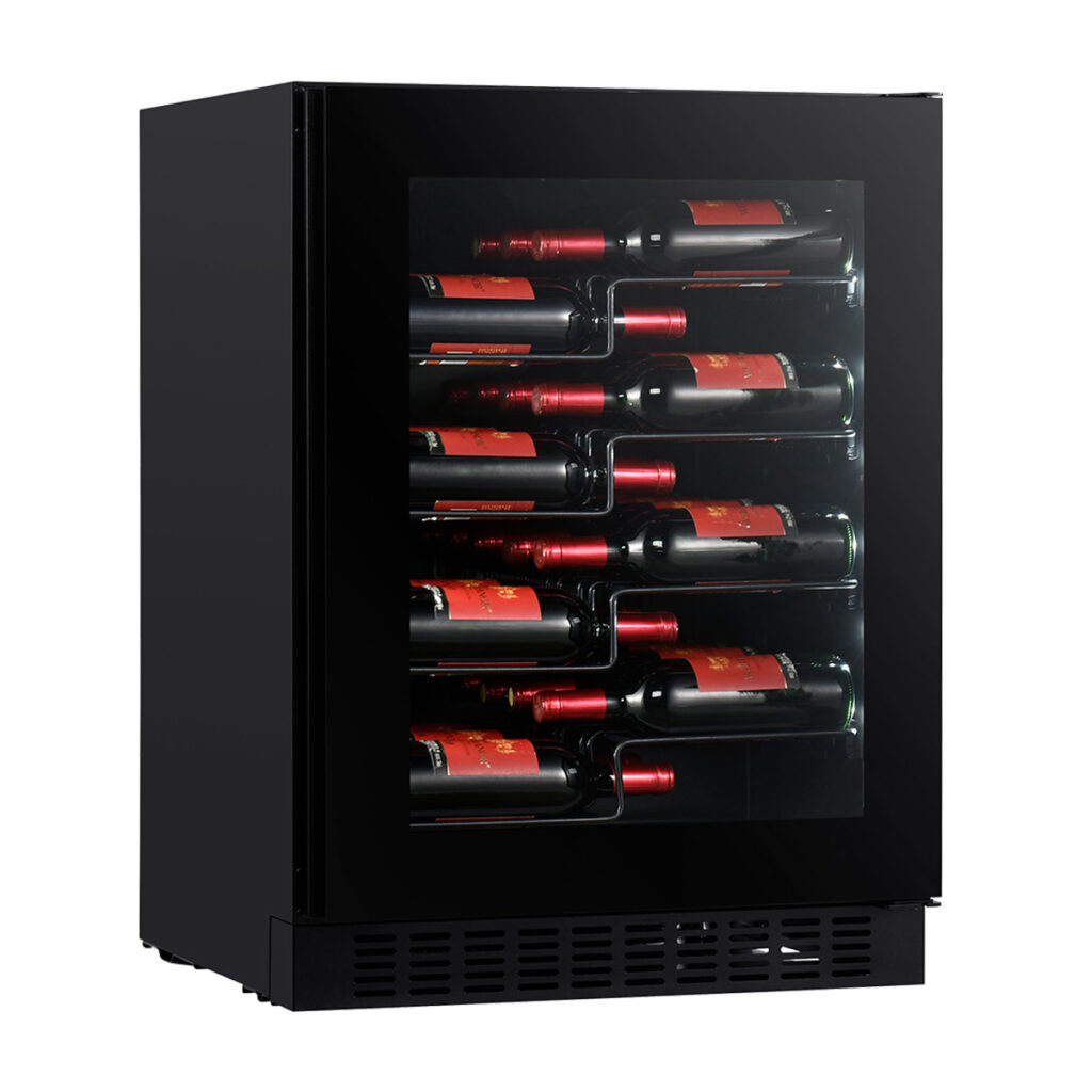 With a 40 wine bottle storage capacity, this stylish and efficient wine cooler is ideal for the home cellar or bar, holiday apartment, commercial restaurant, cocktail lounge or wine bar. Its understated design, sleek black finish, smoked tempered glass and blue internal LED lighting help to showcase your wine collection in style.