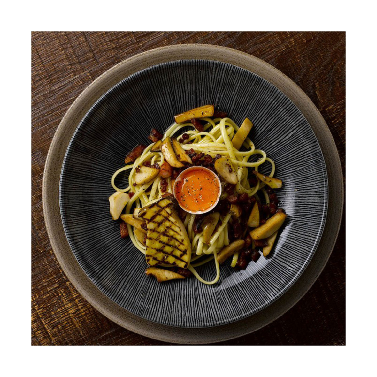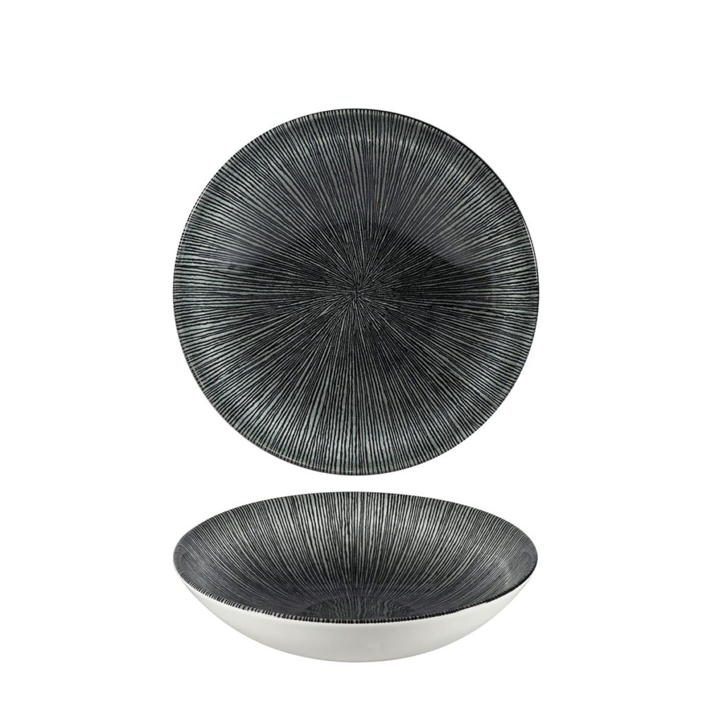 The Agano design is a distinctive range, ideal for food presentation with its linear radial pattern drawing the eye to the centre of the plate spotlighting your marvelous dishes. The classic coupe style is the perfect complement to your culinary creations. Studio Prints Agano is a versatile, abstract design that enhances the dining experience across all manner of food styles and hospitality settings.
