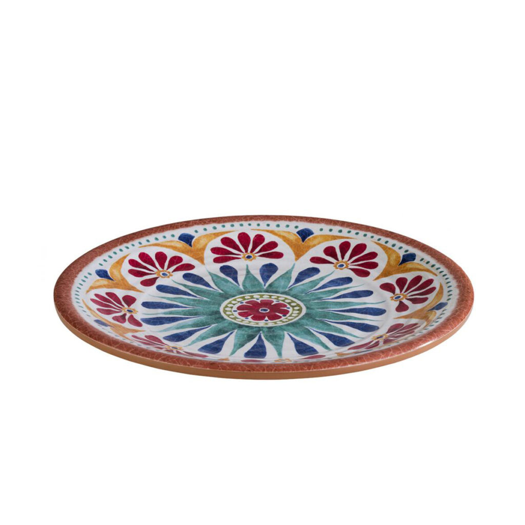 The Arabesque serving plate adds flowery Middle Eastern flair to your buffet display. It is made from virtually indestructible melamine, making it a perfect choice for tough service environments.