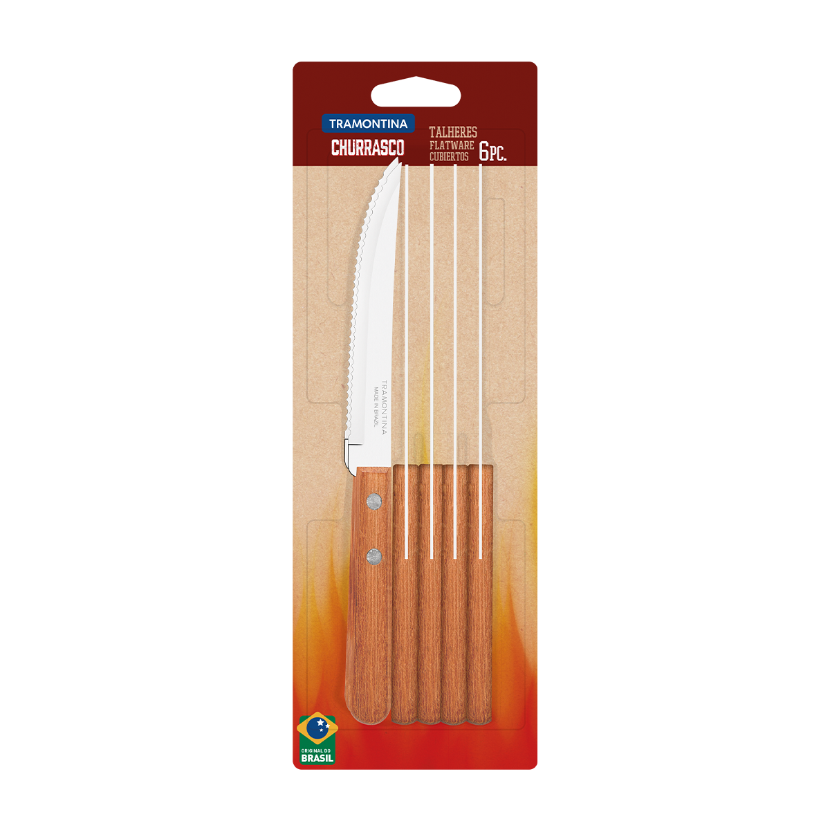 In addition to serving delicious meat, it is very important to set the table with knives that provide a quality cut. To do this, count on the Tramontina Dynamic barbecue knife set with 6-piece stainless steel blades and natural wood handles. Its pieces are resistant and have high cutting edge durability due to the application of heat treatment to the stainless steel blades. Its handles are made of natural wood and provide a more rustic style to the table and also guarantee much more comfortable handling.