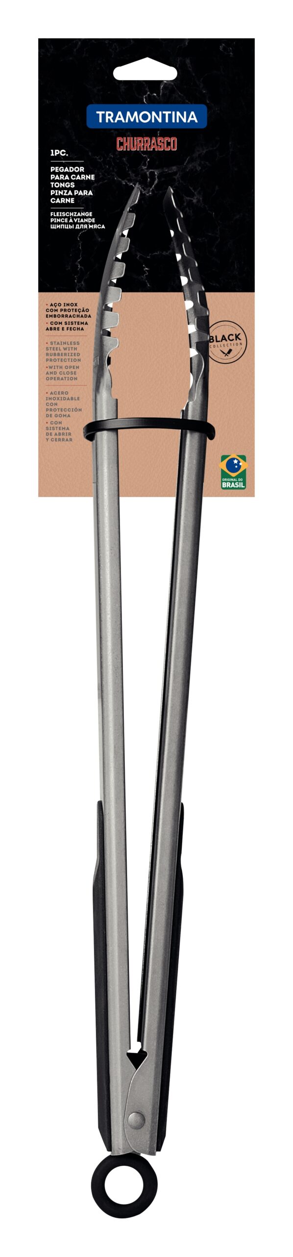 Turning, transporting and serving your barbecue is much more practical and easier with the Tramontina Churrasco Black meat tong with stainless steel blade and black rubber protection. Developed to offer you safety and quality during the preparation of your barbecue. Made of stainless steel with rubberized protection, it has an open and close system that guarantees firm and very comfortable handling, without locking during use. Tramontina and you, the perfect combination for a delicious barbecue!