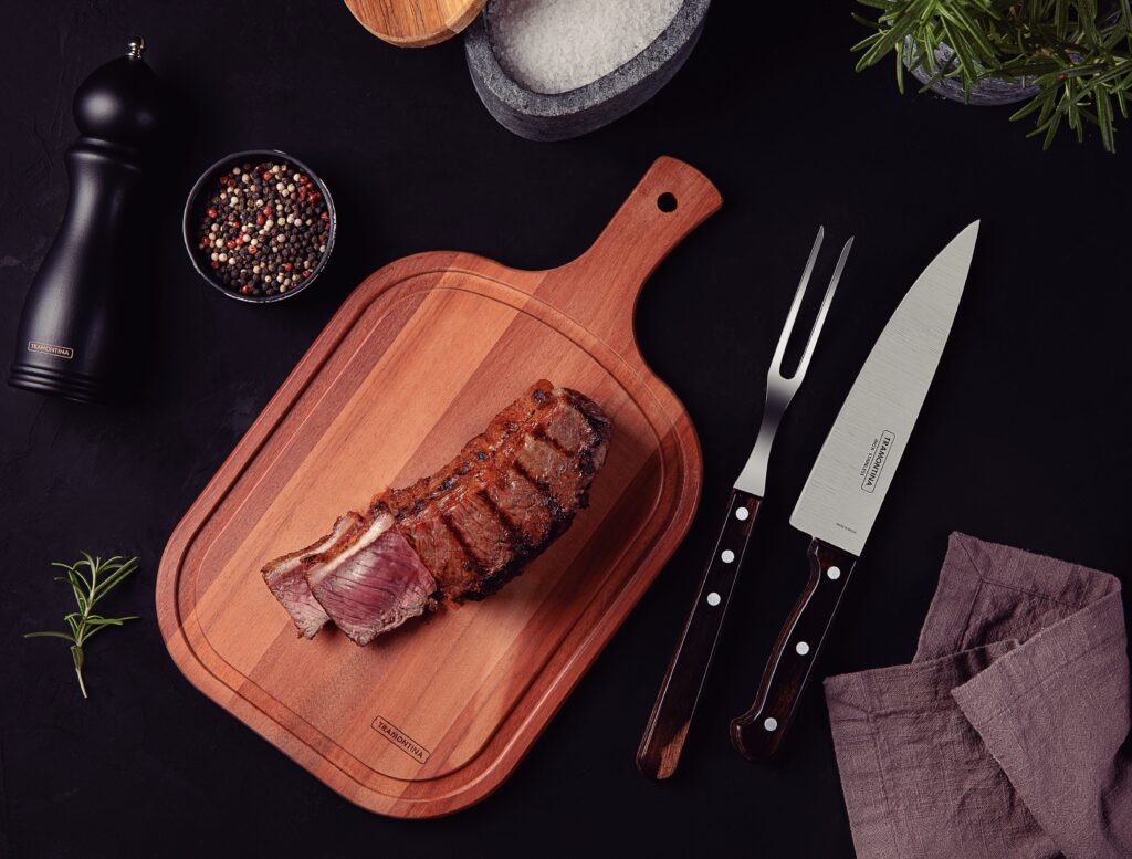 The Tramontina barbecue set with stainless steel blade, brown Polywood handle, and 3-piece wooden cutting board from the Polywood line is the right choice to make your moments as a master barbecue chef even more complete. The knife and carving fork are made with stainless steel blades, which offer excellent results. The treated Polywood wooden handles guarantee resistance to impacts and high temperatures. It comes with a wooden cutting board, to make your day of celebration even better.