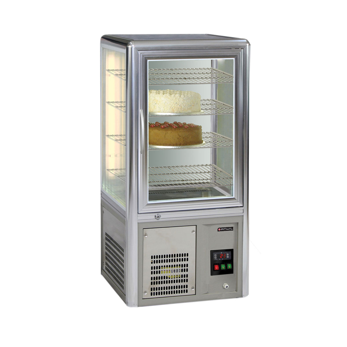 This cake display fridge with fixed shelves has 4 adjustable shelves, double glazed windows to prevent condensation and an automatic defrost feature. Both its interior and exterior is constructed from aluminium and stainless steel making it an exceptionally durable fridge.