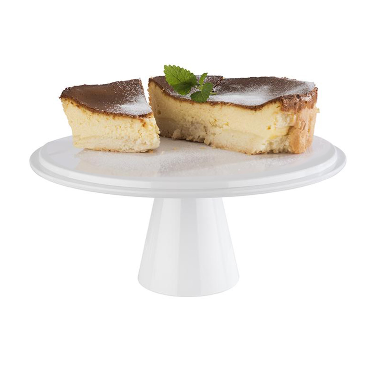 This cake display stand by APS is the perfect blank canvas to spotlight your colourful baked goods and desserts. Its classic beauty and virtually unbreakable melamine construction make it ideal for hospitality service. It is available in a short or tall base.