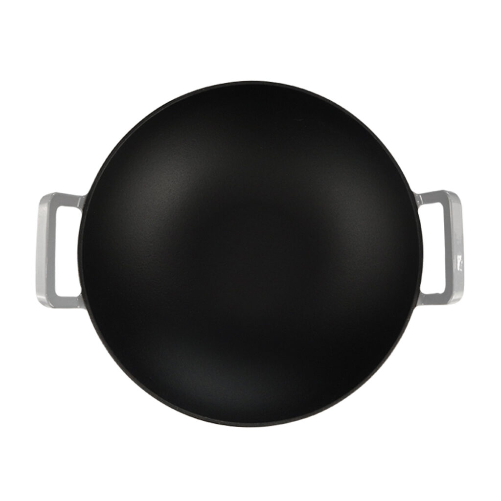 The new range of enamel cookware is designed in the classic French tradition, with the durability and strength of cast iron to withstand the harsh Hospitality environment. This Wok with double handles is a great addition to any kitchen.?Enamel-coated in a subtle matt Black, the Chef wok will ensure a great cooking experience with every use.