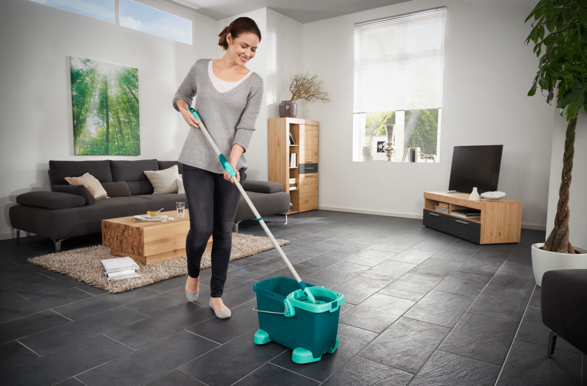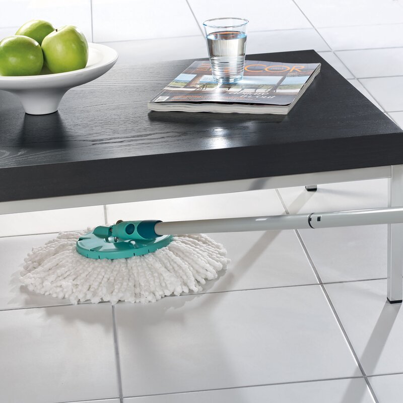 Gentle and damp cleaning for wood, parquet and laminate floors. The ‘spinning top’ rotation mechanism?spins water out?the wringer, removing the need to bend down and put hands in dirty water.