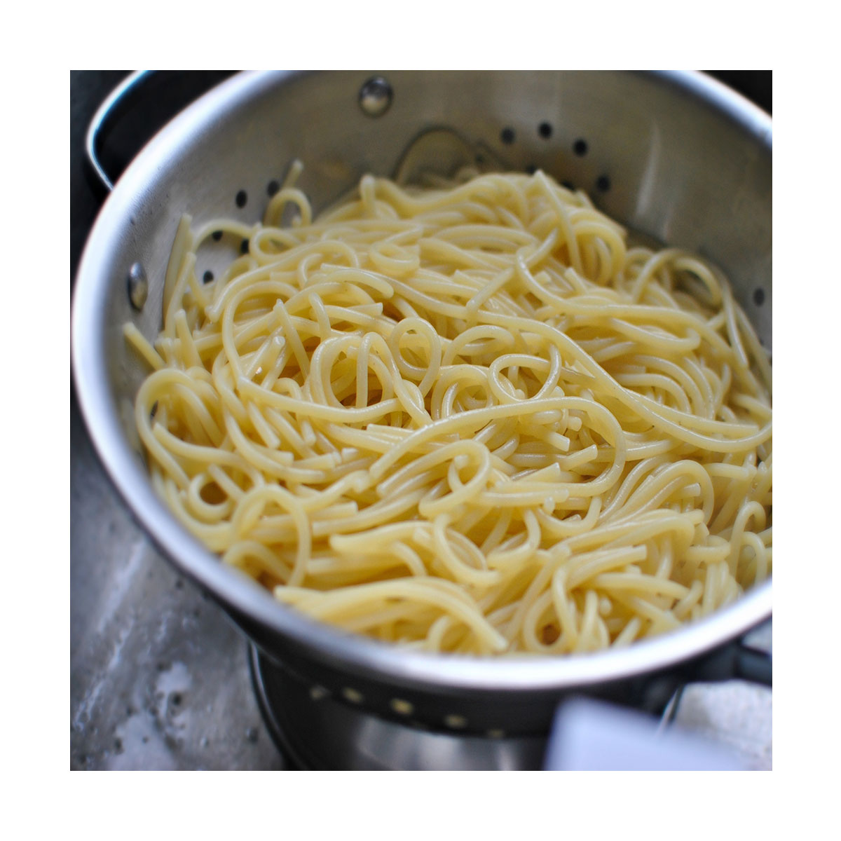 Polished stainless steel colander