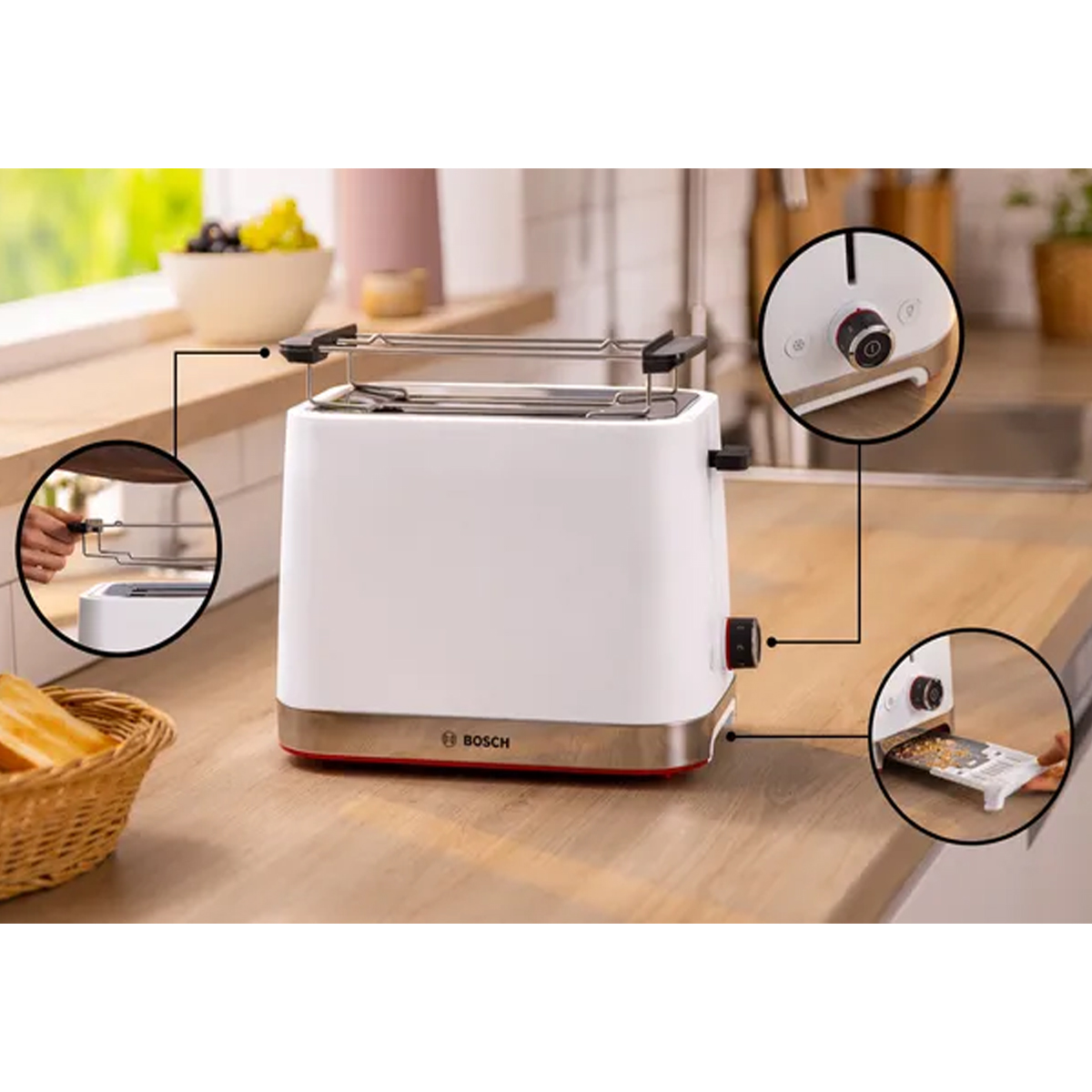 - Defrost and warm-up setting: defreezes your toast and makes it crunchy