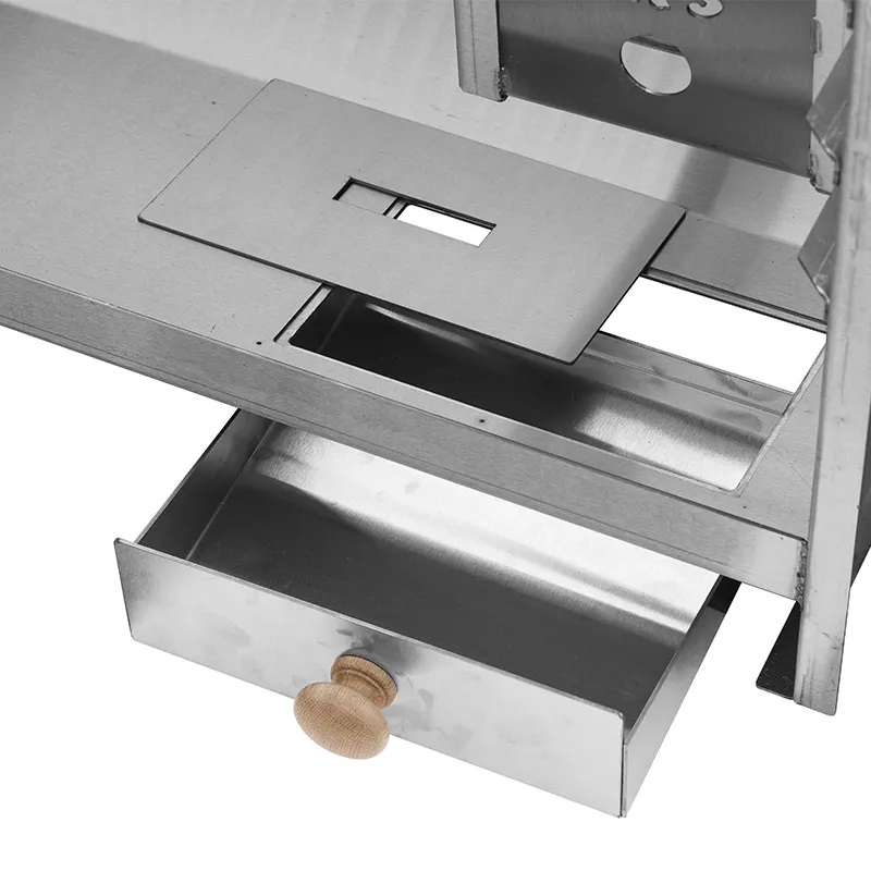 The perfect mobile countertop braai fit for a family braai. The countertop braai is complete with ashtray, 3x adjustable heights for the grid, as well as an interchangeable ember maker, enabling easy access when you want to light the fire.
