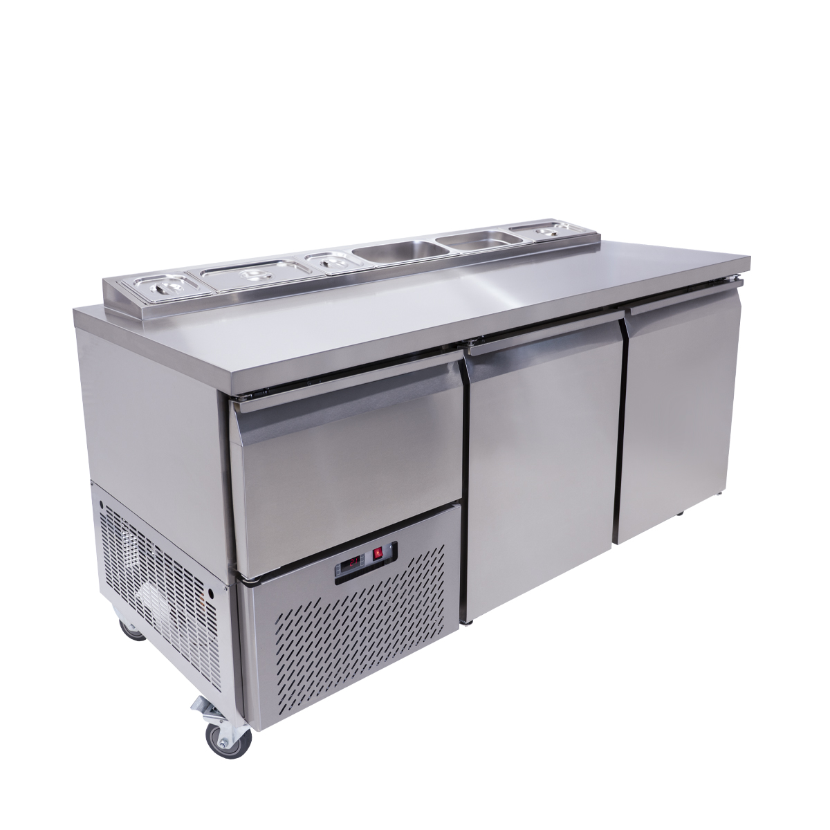The dual pizza underbar serves several functions in your front or back of house, acting as both a bar fridge and pizza ingredient holder. Its full stainless steel construction ensures its longevity in your kitchen and allows it to stylishly slot into any setting.