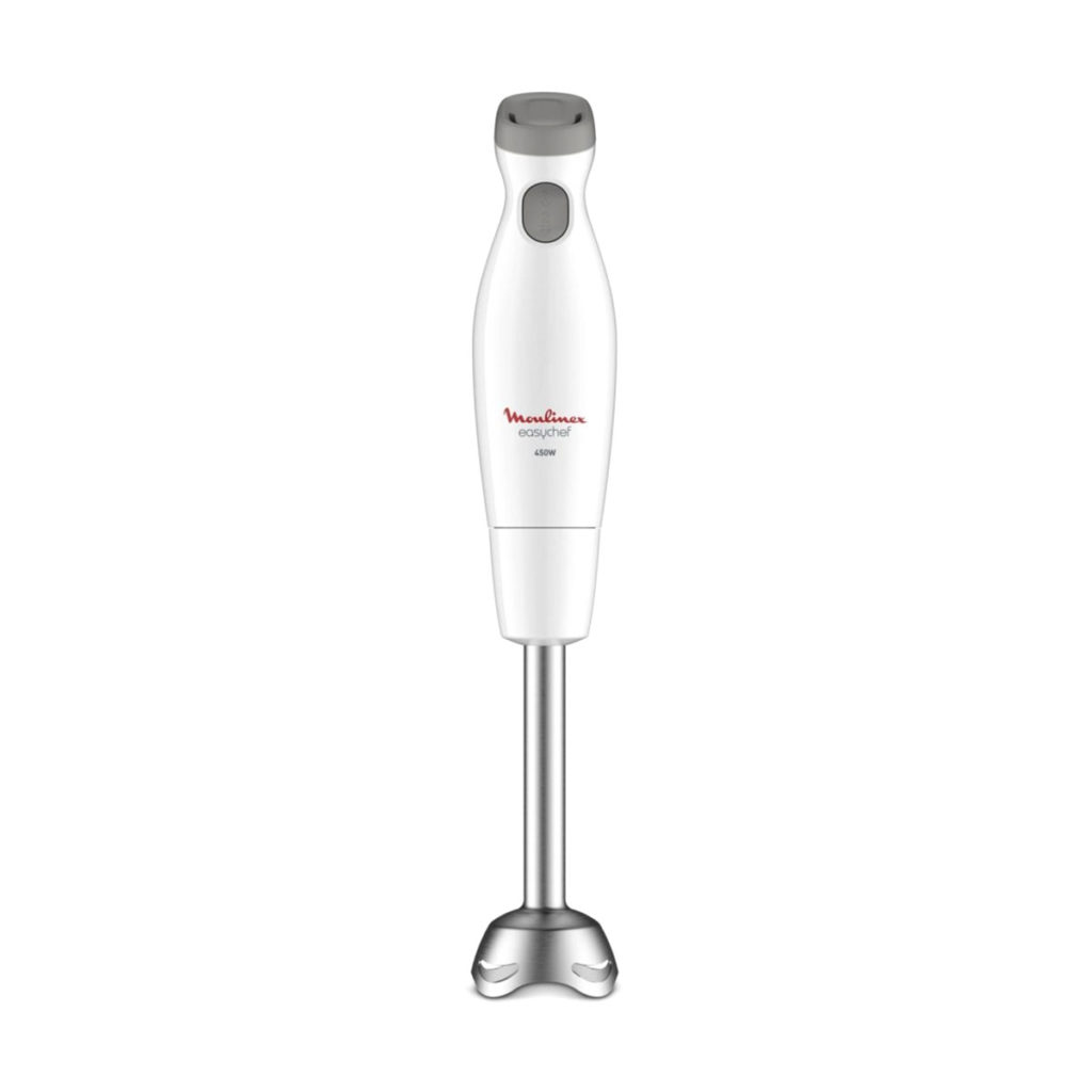 The Easy Chef Moulinex immersion hand blender delivers perfect and reliable results with every use. Designed with the user in mind, this ergonomic 450W hand blender assists you to perfectly prepare sauce and cake mixtures, mashed potatoes, mayonnaise and other delicious recipes at the touch of a button. The high-quality stainless steel blade is robust and durable. The practical 2-speed function is perfect to make your daily preparations easier and more efficient.