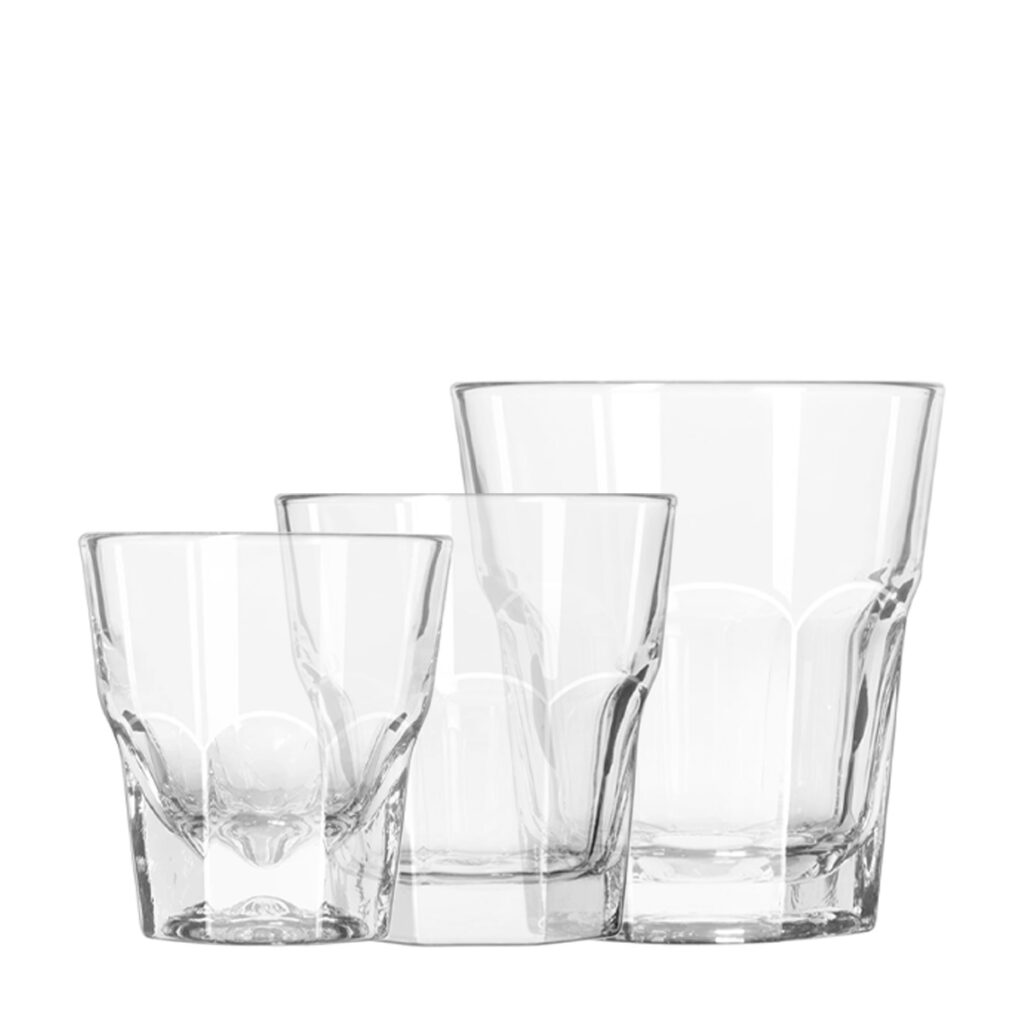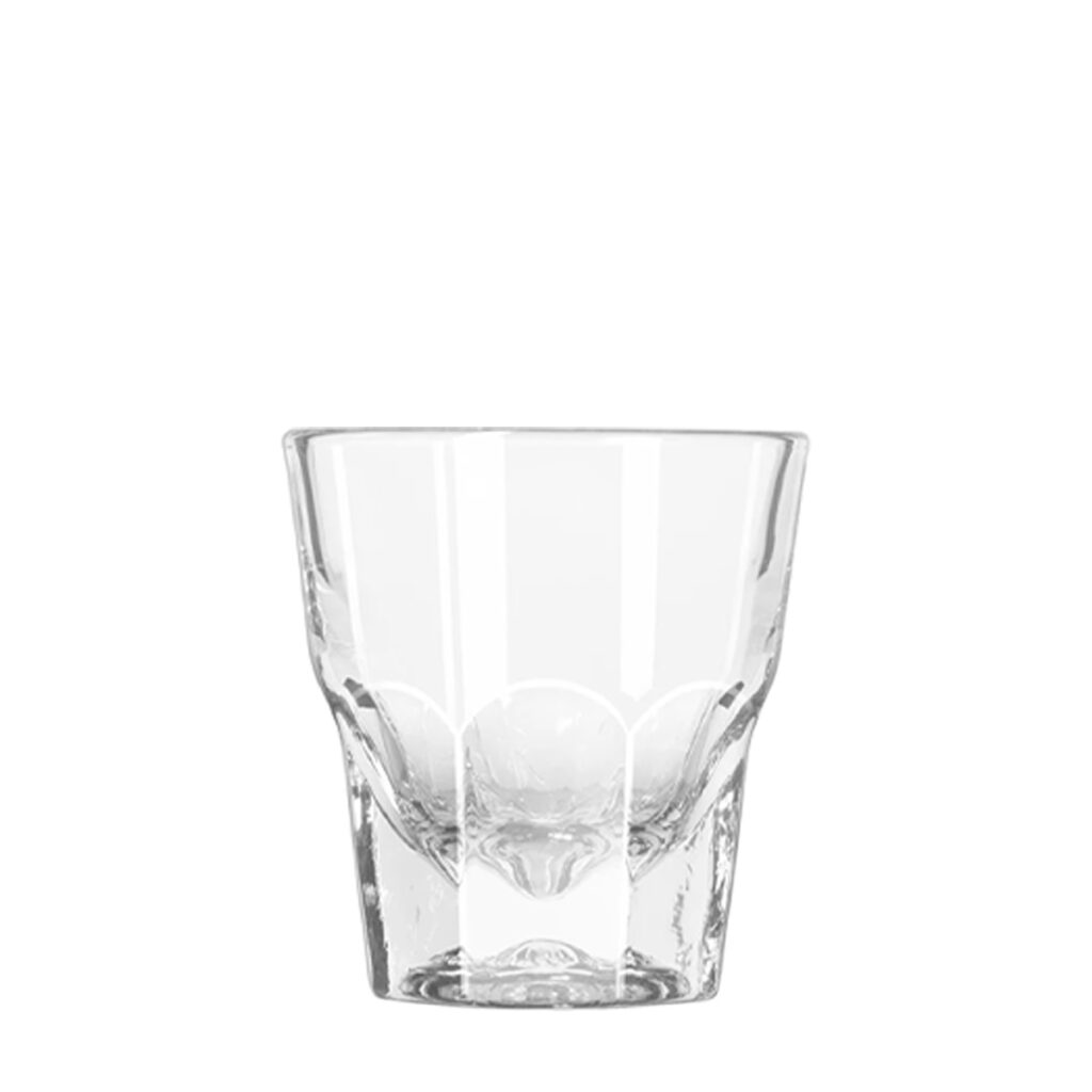 The Gibraltar whiskey glass is perfect for the service of drinks on the rocks as well as espressos, cortados and an array of other beverages that require smaller tumblers.