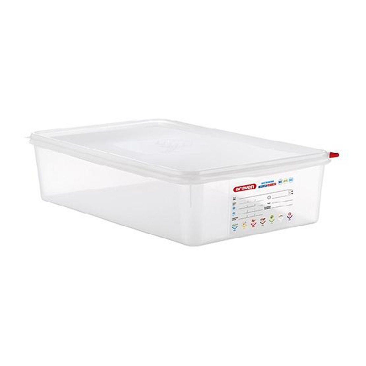 Keep food fresh for longer with excellent storage equipment like the GN 1/1 airtight container by Araven. These containers are made from high-impact resistant polypropylene that’s suitable for food contact and come complete with airtight lids for ultimate storage capability.