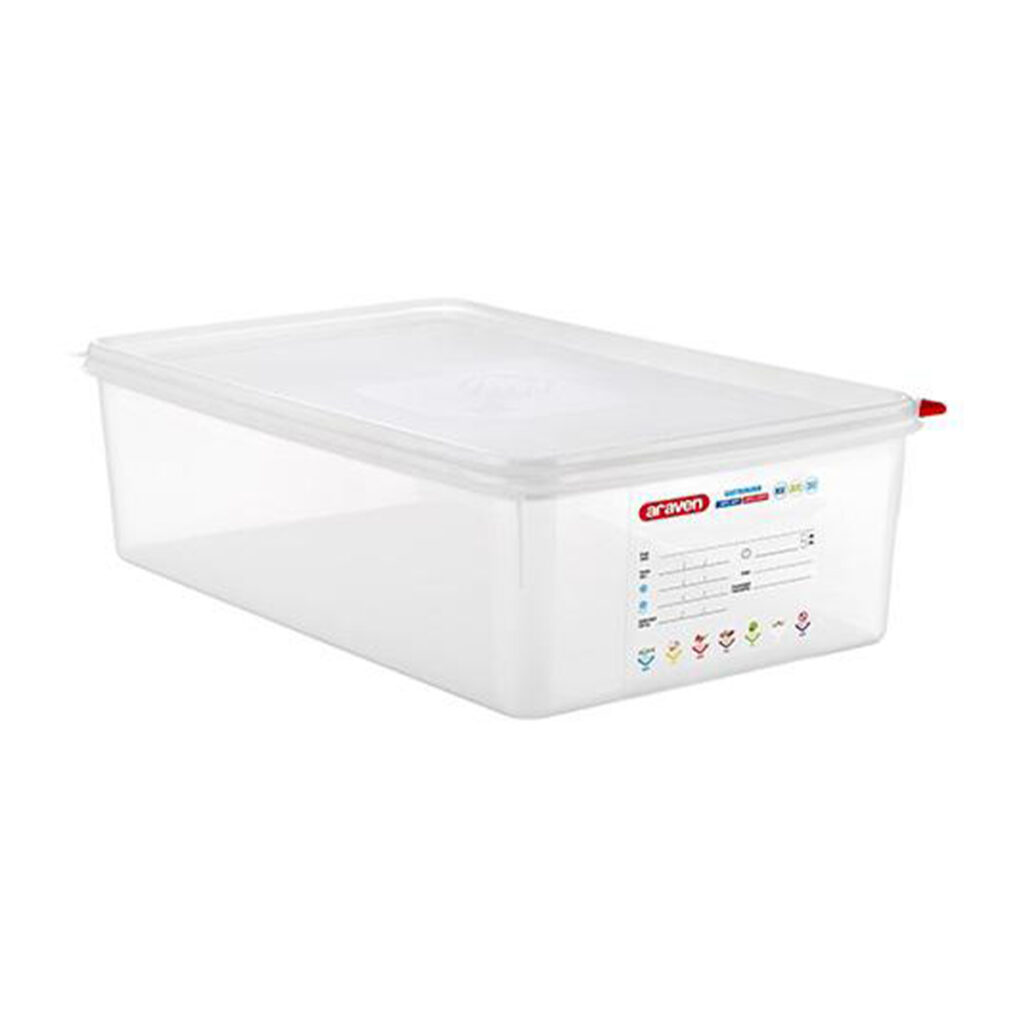 Keep food fresh for longer with excellent storage equipment like the GN 1/1 airtight container by Araven. These containers are made from high-impact resistant polypropylene that’s suitable for food contact and come complete with airtight lids for ultimate storage capability.