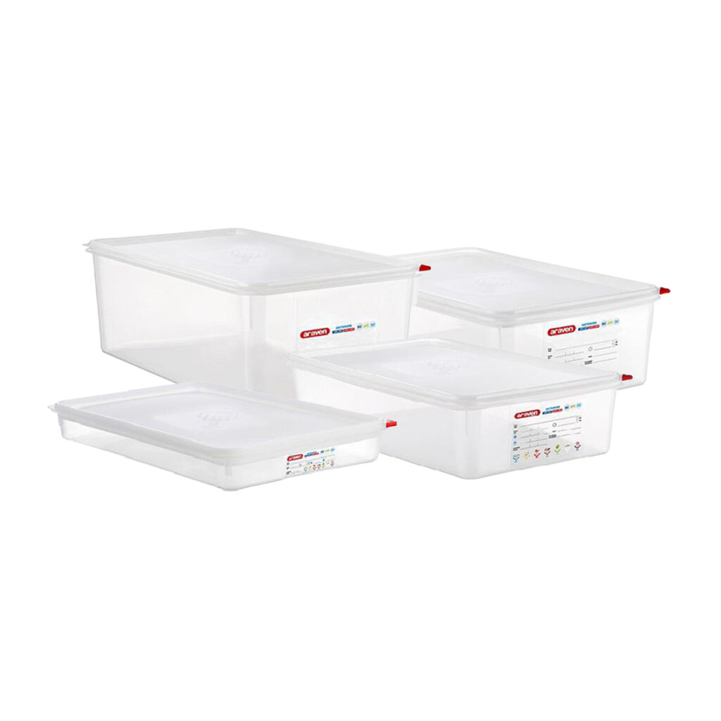 Keep food fresh for longer with excellent storage equipment like the GN 1/1 airtight container by Araven. These containers are made from high-impact resistant polypropylene that’s suitable for food contact and come complete with airtight lids for ultimate storage capability.
