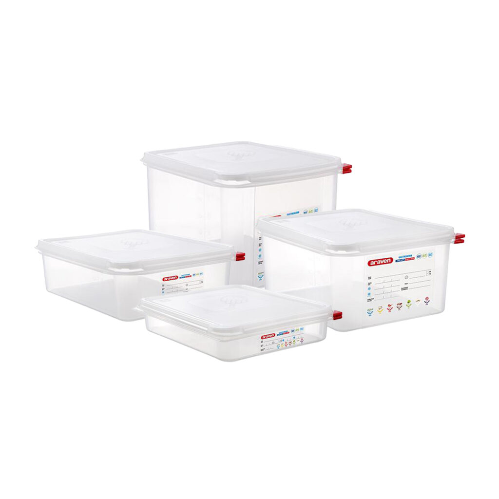 Keep food fresh for longer with excellent storage equipment like the GN 1/2 airtight container by Araven. These containers are made from high-impact resistant polypropylene that’s suitable for food contact and come complete with airtight lids for ultimate storage capability.