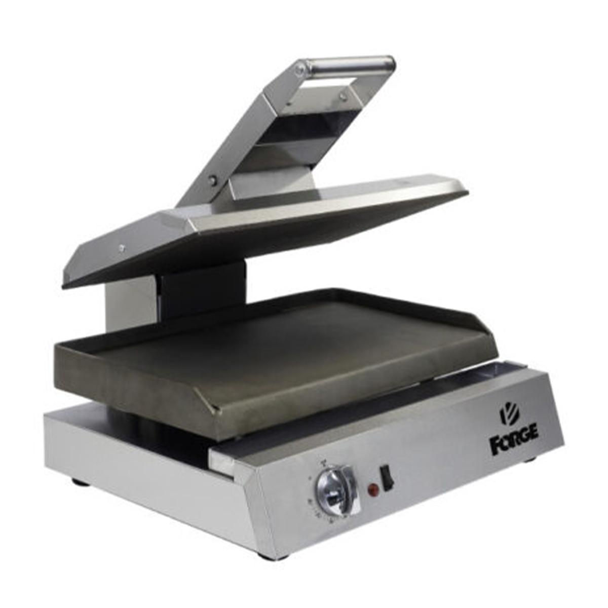 The heavy-duty flat top toaster and griller by Forge is designed to function in the rigorous and demanding environment of busy kitchens in the hospitality industry, with mechanically tested handle operation lasting up to 100 000 cycles with effortless ease. Operating temperature range of 50 – 250 Degree Celsius, with a neutrally balanced top plate with positive latching mechanism. The independently operated bottom plate heat control allows for grilling option.