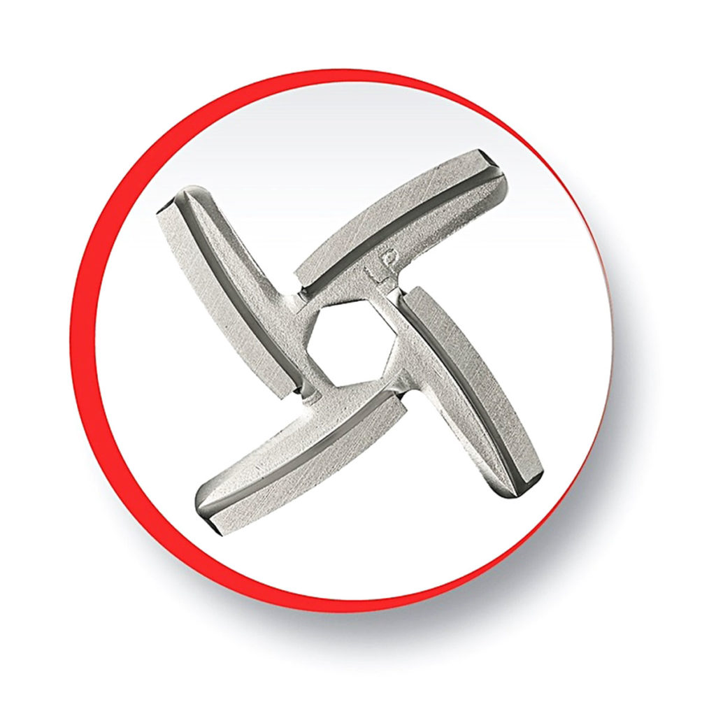 The impressive HV1 Meat Mincer from Moulinex with its powerful 1400W motor and stainless steel blade ensure a variety of quality mince options for any of your favourite recipes. Tough pieces of meat is easily minced and blockages can be cleared with the reverse function. This allows the larger meat pieces to be re-cut, to ensure the correct meat consistency is achieved with every use. This mincer is the perfect size for a variety of meat dishes and can cater for large volumes of people, while being small enough to easily disassemble and take to your next braai.