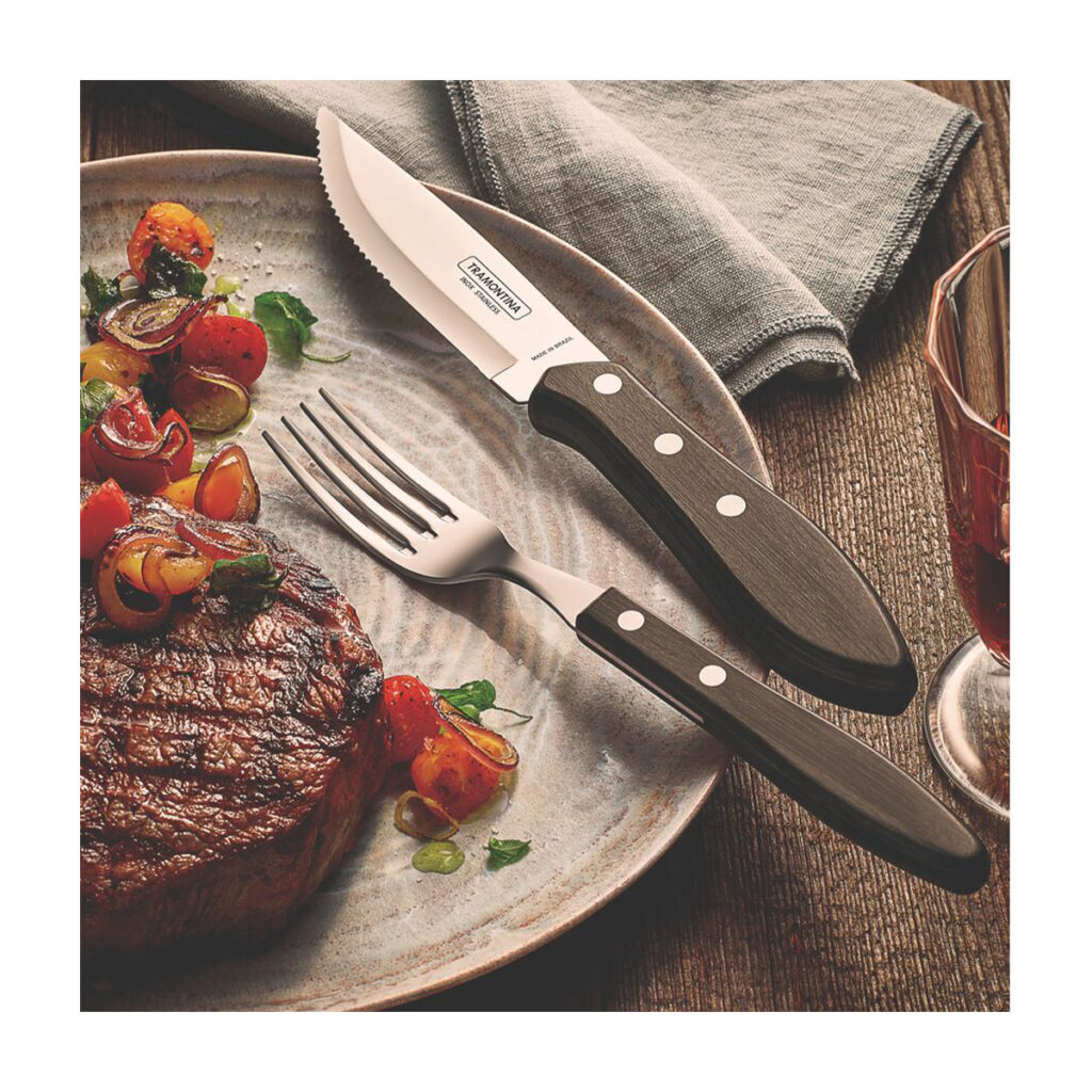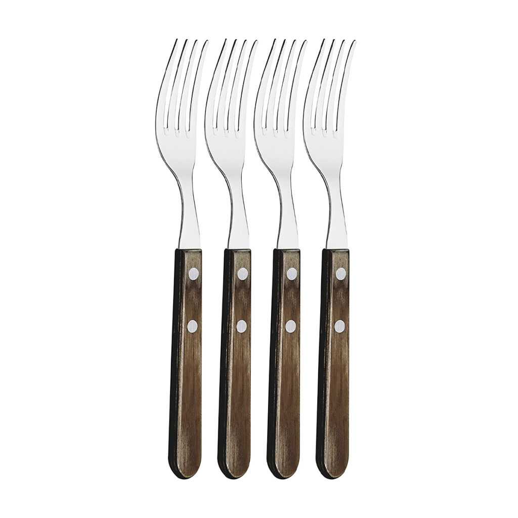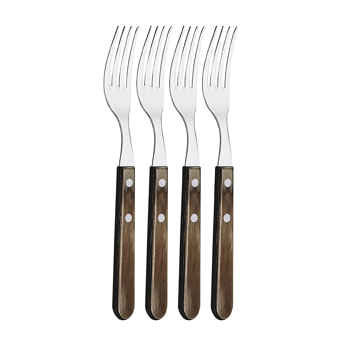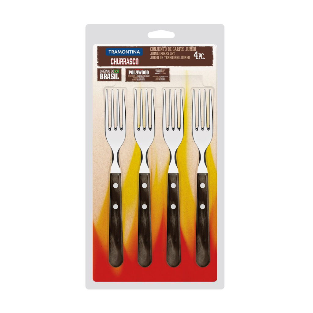 With Tramontina’s 4-piece Jumbo set of stainless steel steak forks with brown Polywood handles, you will add even more beauty and convenience to your table. Made of highly durable stainless steel and treated Polywood handles, these forks are perfect for any environment. The handles and blades are resistant to shock and high temperatures too, making this set the perfect addition to complete your braai collection.