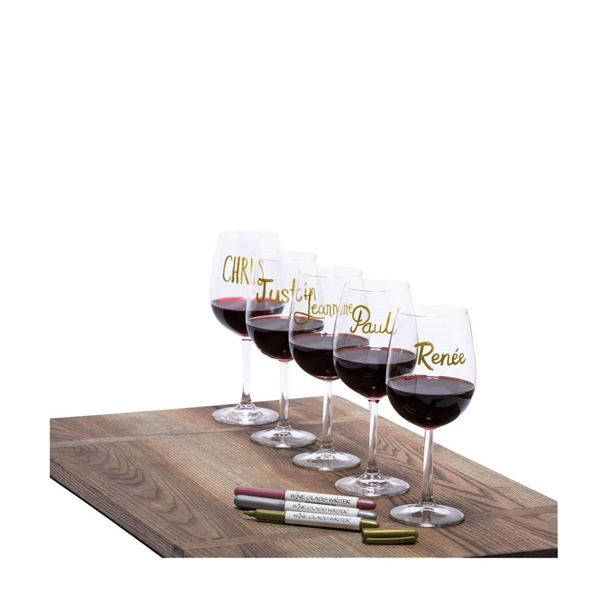 - The Metallic Wine Glass Marker set includes: