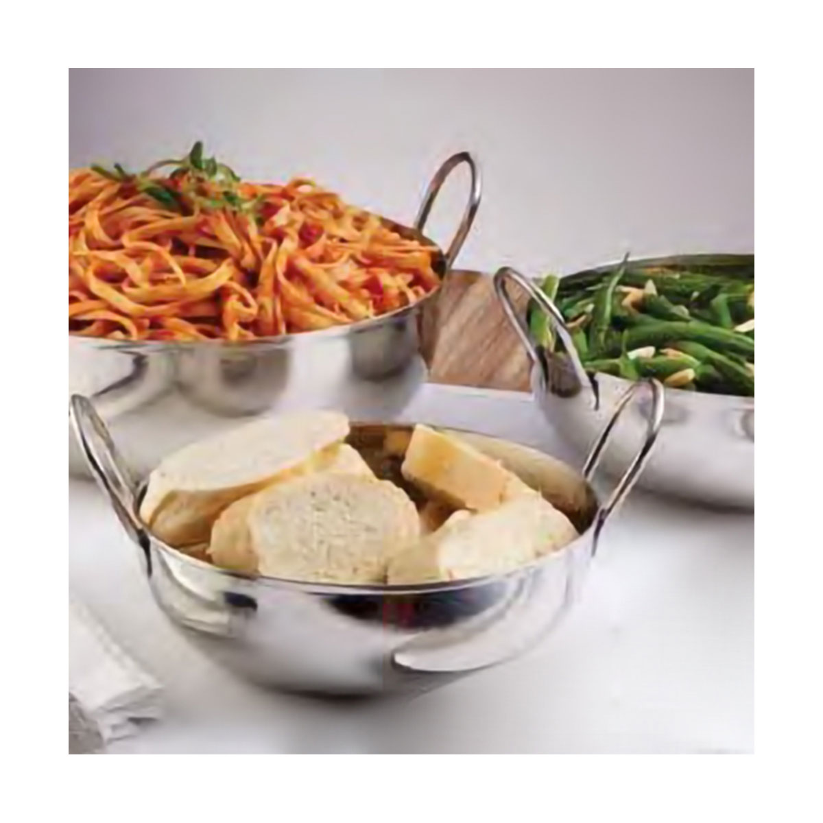 Polished stainless steel with mirror finish mini serving Balti dish is perfect for serving individual portions of oriental salads with an fantastic look.?Easily transported with dual handles