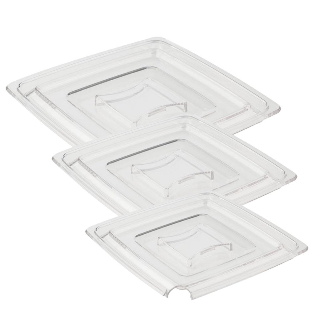 This notched plastic container cover by APS is available in various sizes for a snug fit. Keep your food fresh during service and storage using these simple yet effective covers.