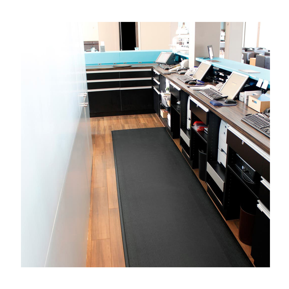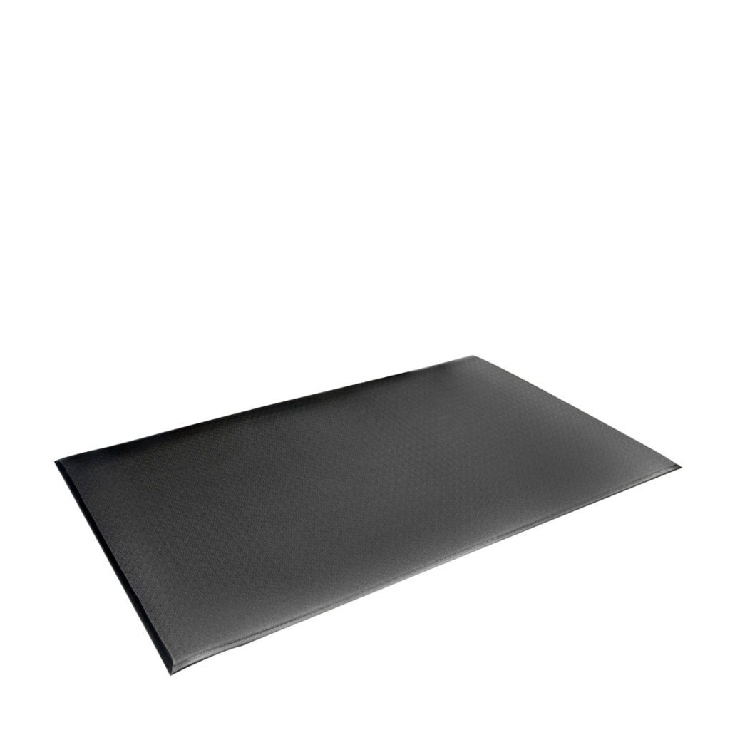The Orthomat range is designed with a pebble-textured surface to trap soft particles and dirt. The soft foam padding offers superb comfort for the office or warehouse areas, and can also be used around assembly lines, packing stations and around workbenches. This range is also available as Orthomat Safety with bright yellow bevelled edge borders. Conforms to Slip Resistance Test EN13552 (Category R10). Fire tested to DIN54332 (B2) part of DIN4102.