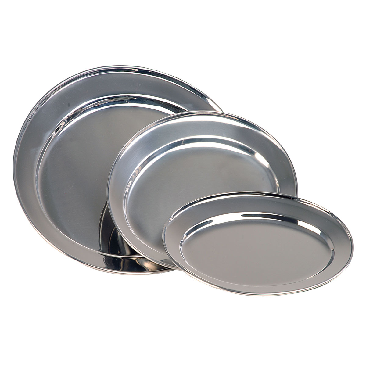 Add this stylish stainless steel oval serving platter to your dining essentials for quick and easy service. It features a minimalistic rounded design that easily complements a selection of finger food.