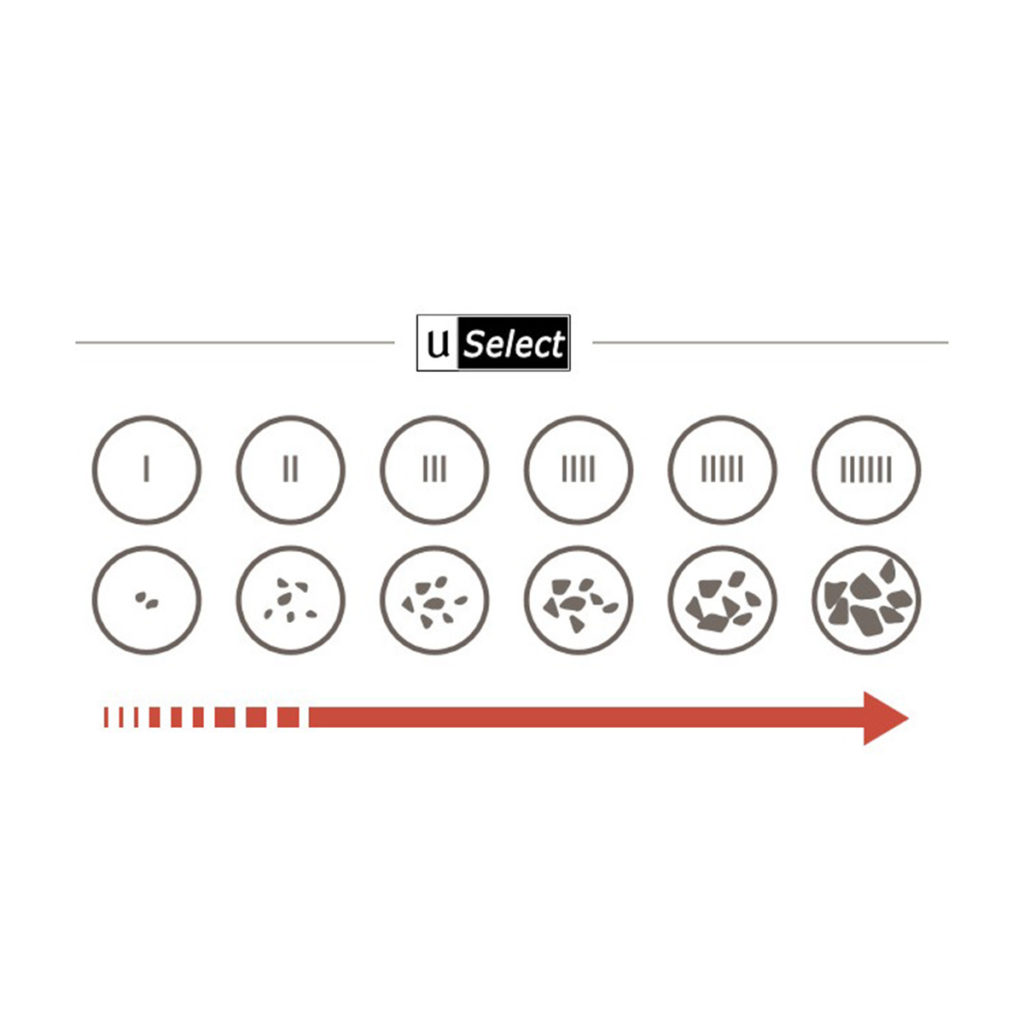 - Using the U-Select grinding mechanism, you as the user can select the fineness of your grind by simply rotating the bottom mechanism to suit your taste