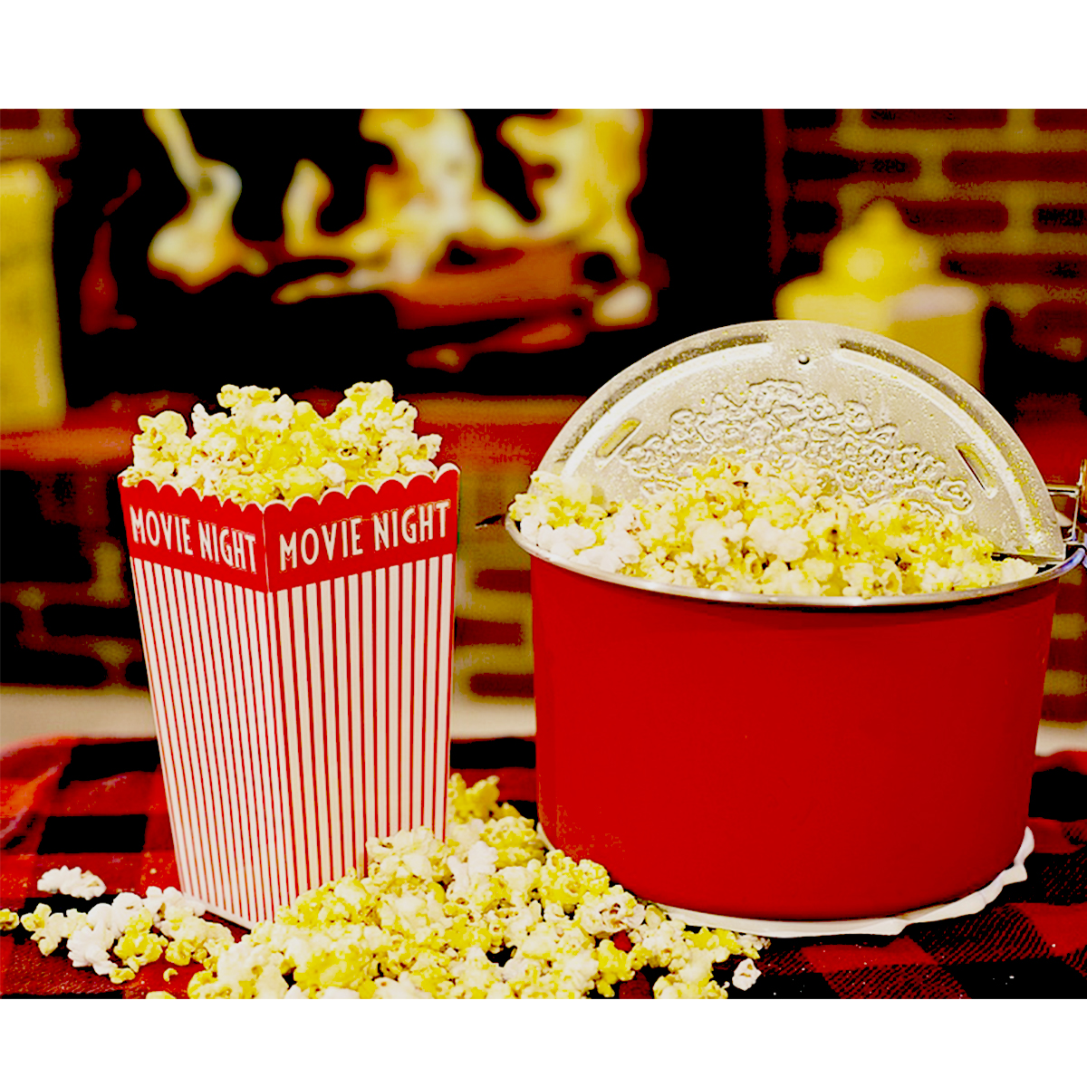 - Interior heater keeps popcorn warm