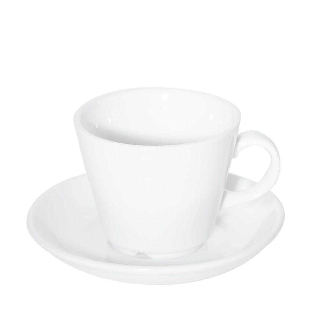 The reliable Prima Alfa Cappuccino cup and classic double well saucer is made from hospitality grade porcelain so that it can withstand the rigours of frequent use.