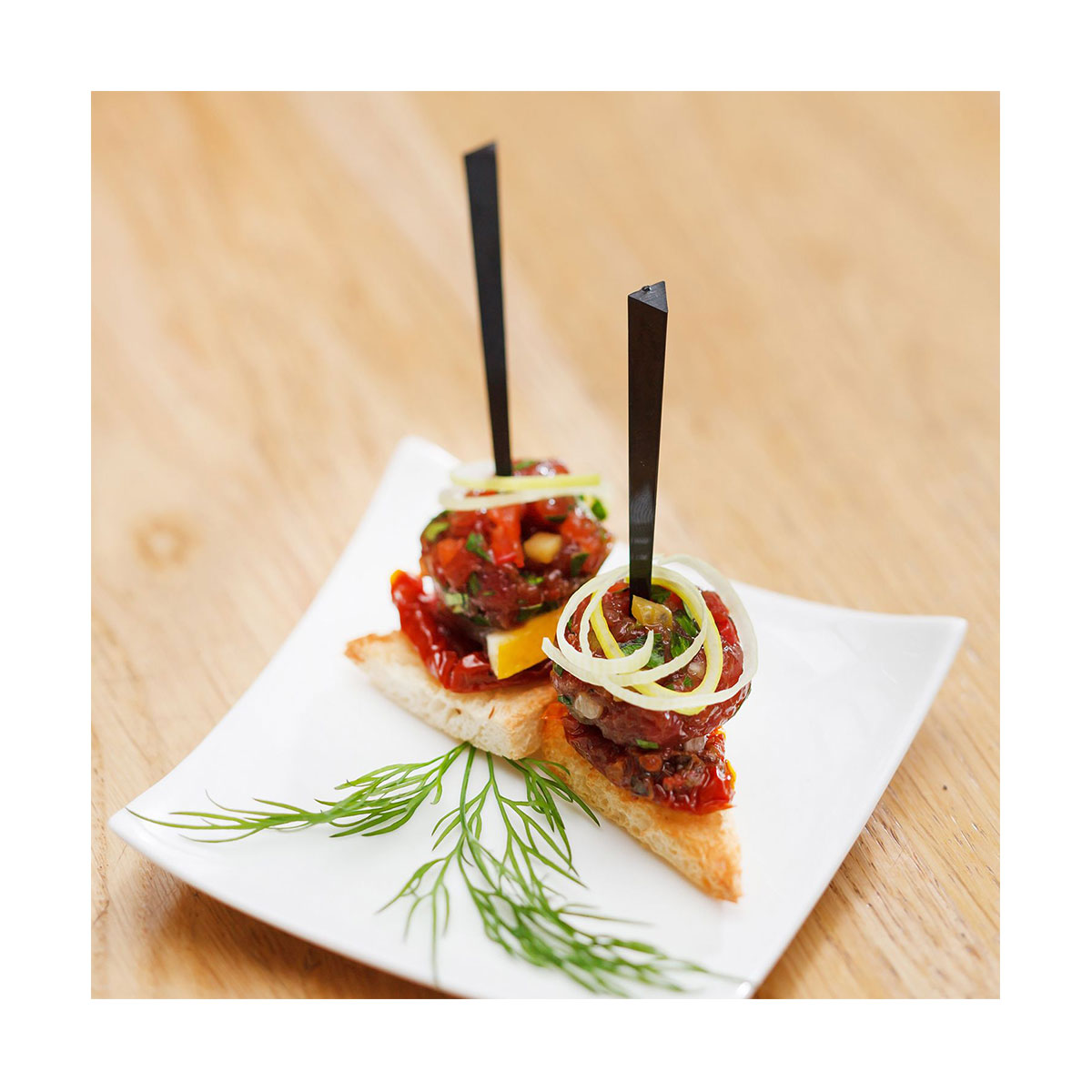- Use to beautifully stack your finger snacks or add garnish to your cocktails and drinks