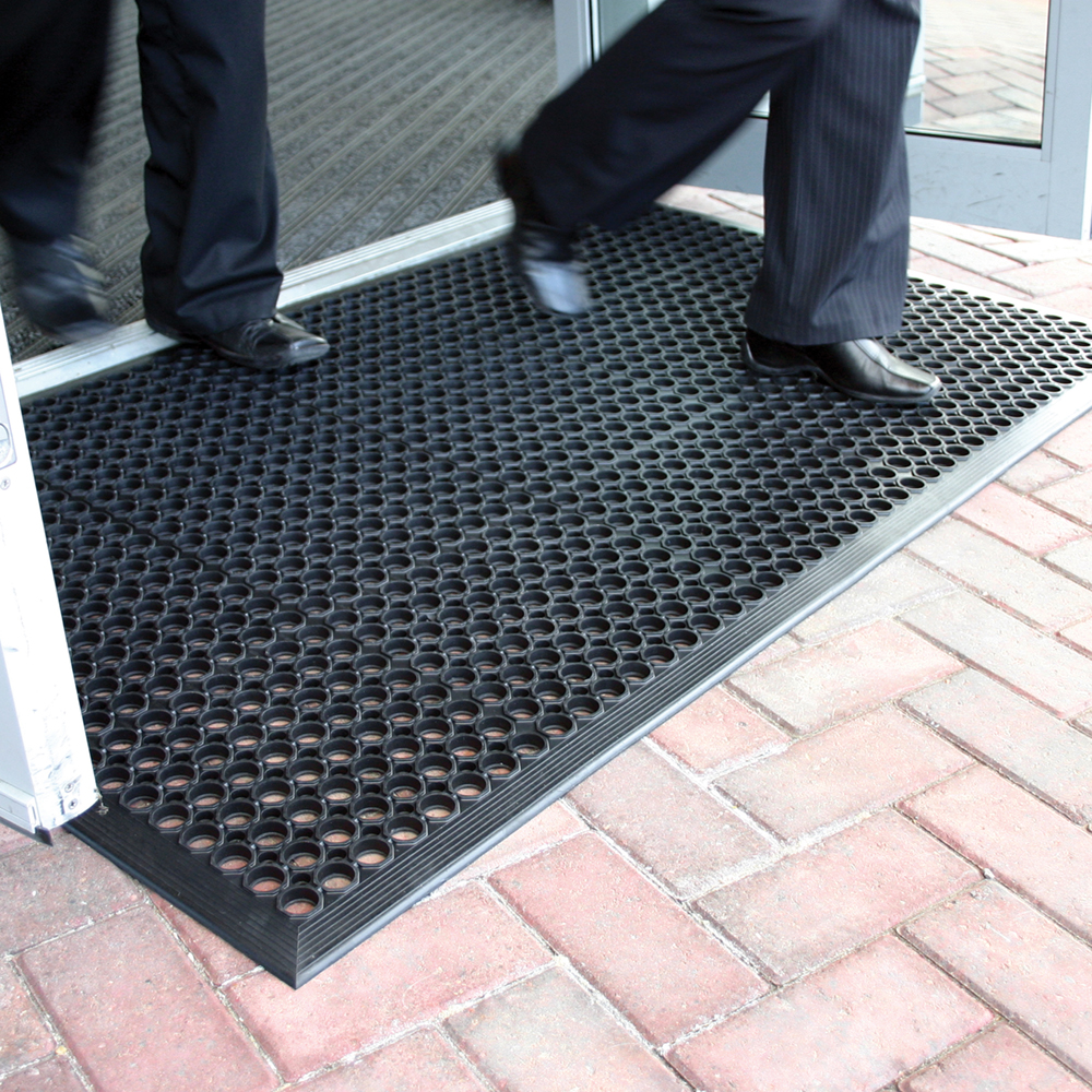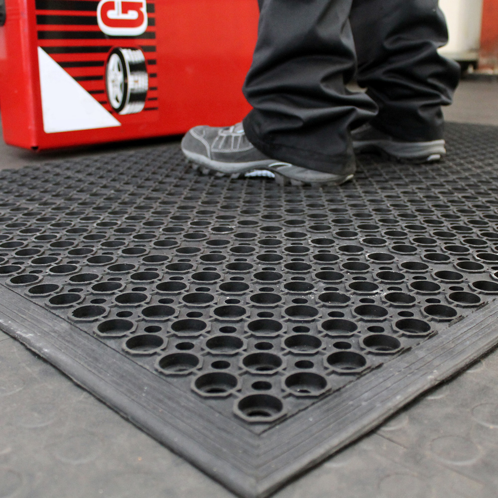 An economical anti-fatigue mat for the workplace that is made from hardwearing NBR Rubber. It has a raised circular surface for superior slip resistance and open drainage holes for spilt liquids.