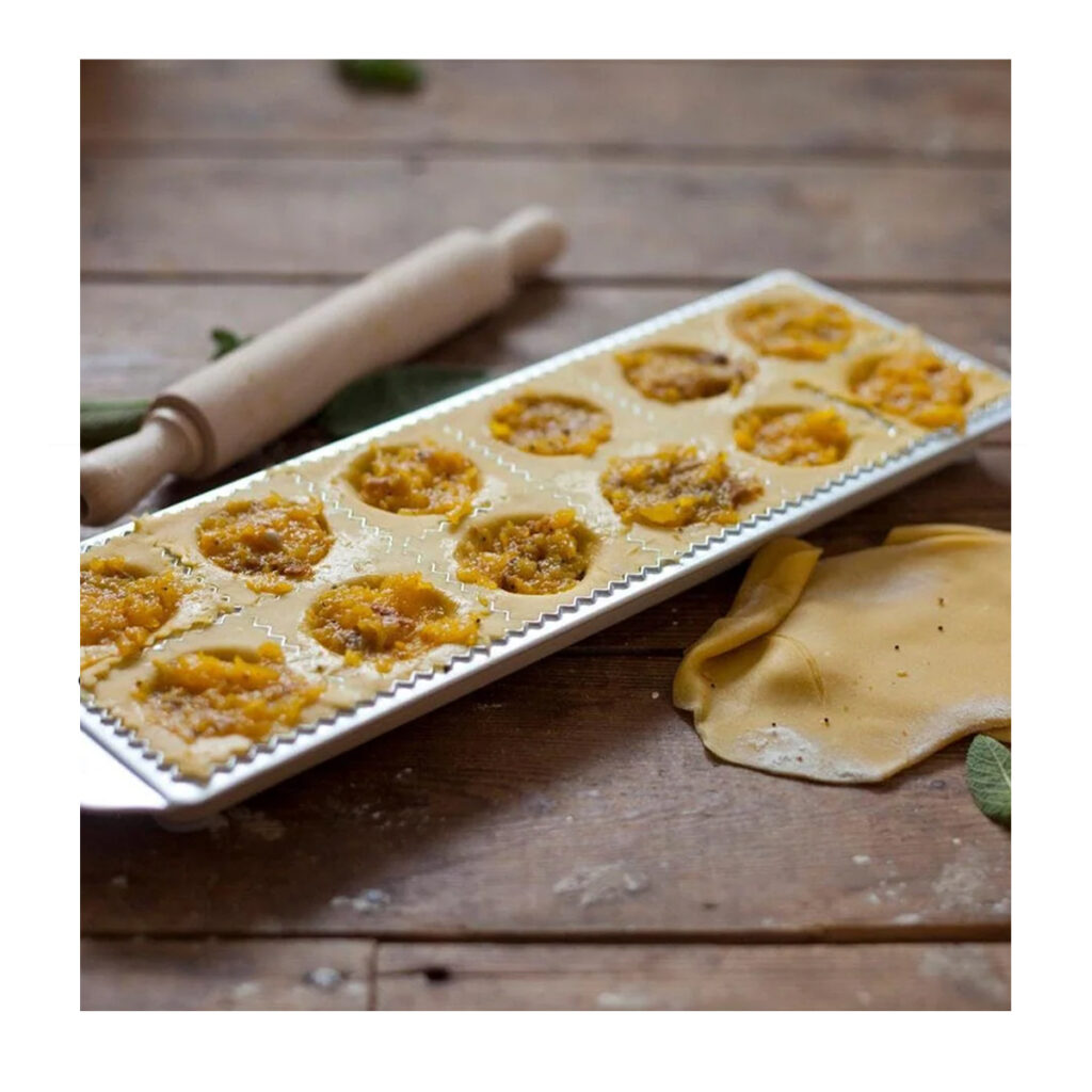 The Kuechenprofi Ravioli Tray with wooden roller is a great accessory to help you whip up a batch of ravioli portions in a matter of minutes. The ravioli board is perfect for making delicious ravioli for lunches or desserts with a variety of filling ideas like chocolate, cheese, mince or creamy vegetable mixes.