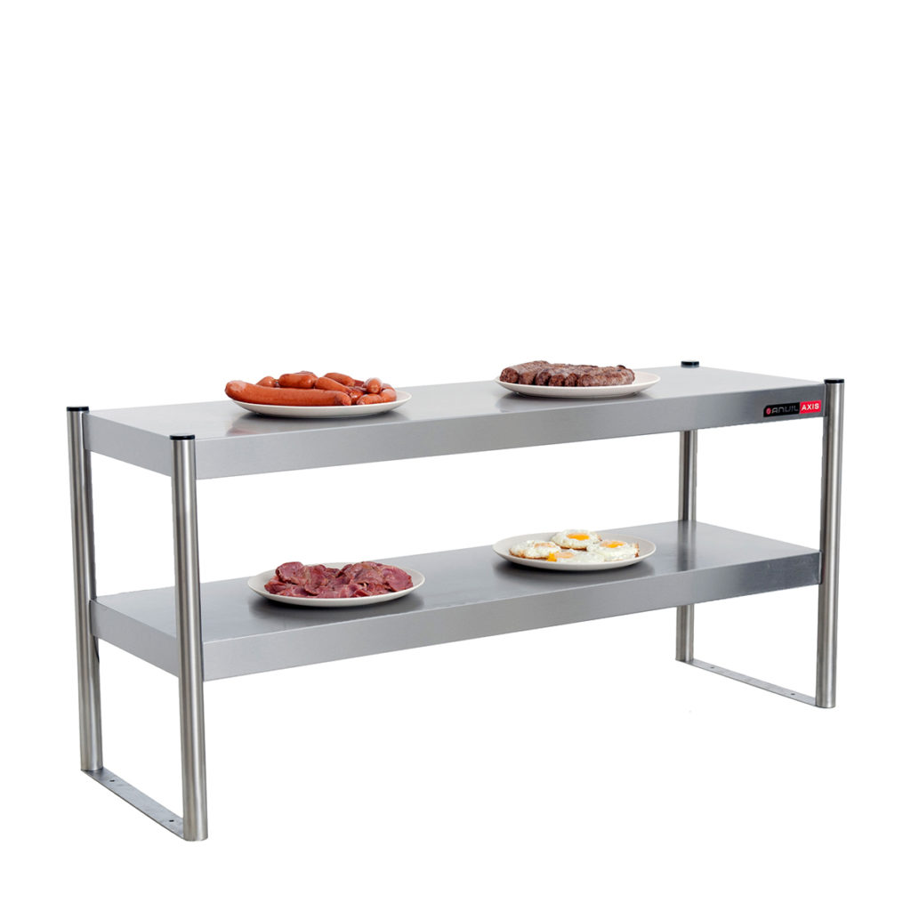 The Riser Shelf Neutral by Anvil is a must for every service kitchen in the hospitality industry. Also known as a pass-through, it allows easy access from and to the kitchen, adding to decreased delivery time, maximizing production flow and movement, as well as additional packing space for smaller canteens and fast-food shops.