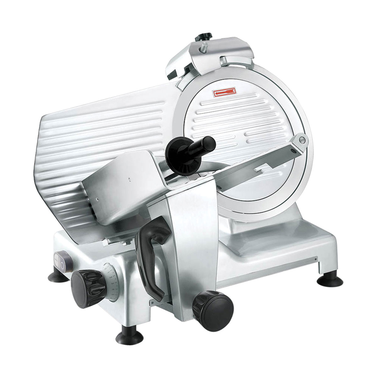 The Avenia meat slicers are an excellent choice for those who want superior quality at an affordable price. The stainless steel blades are durable, easy to clean, and the calibrated knob makes it very easy to adjust the meat thickness accurately. Perfectly finished off with an aluminium finish, this slicer will increase production and profitability with your meat cuts. Available in three sizes.