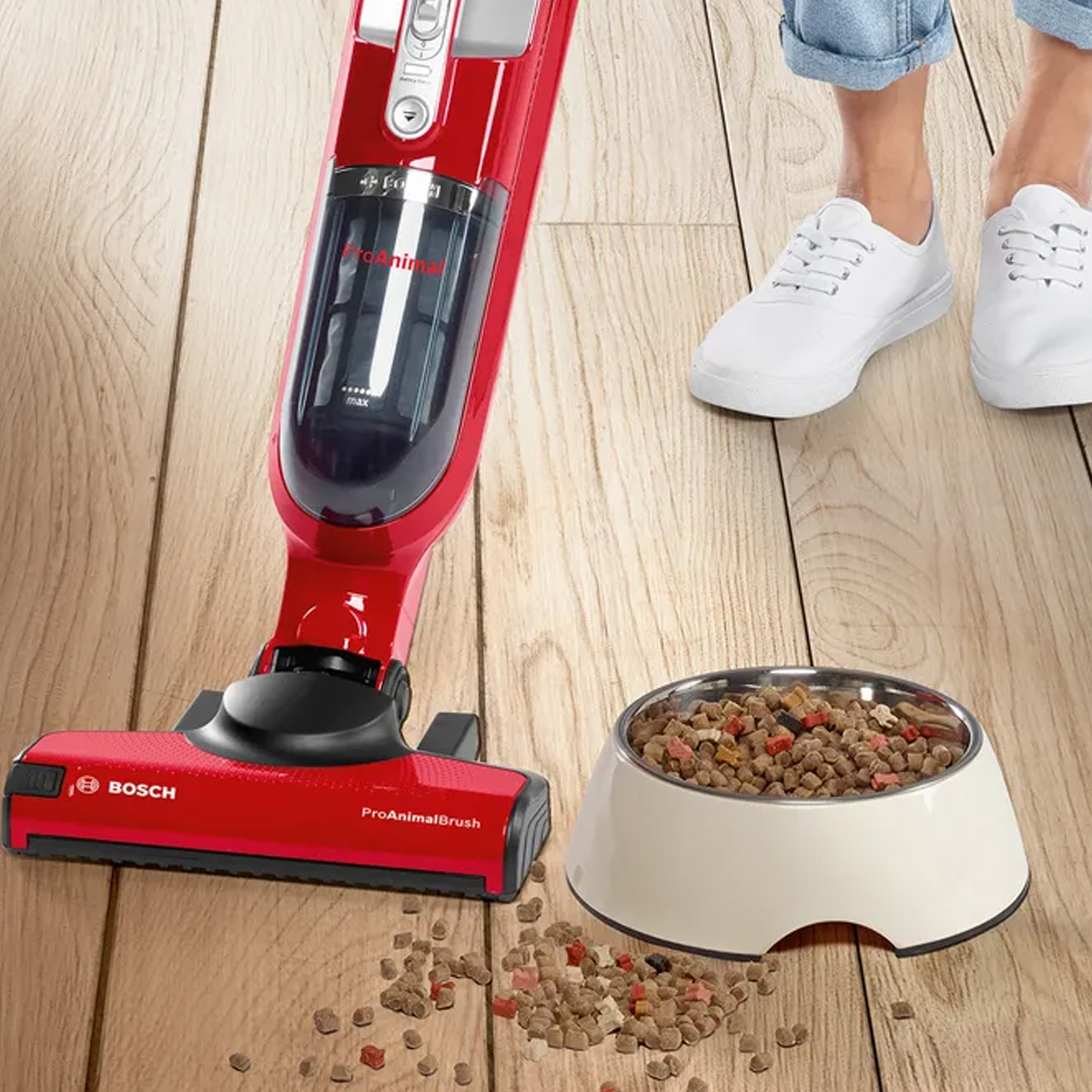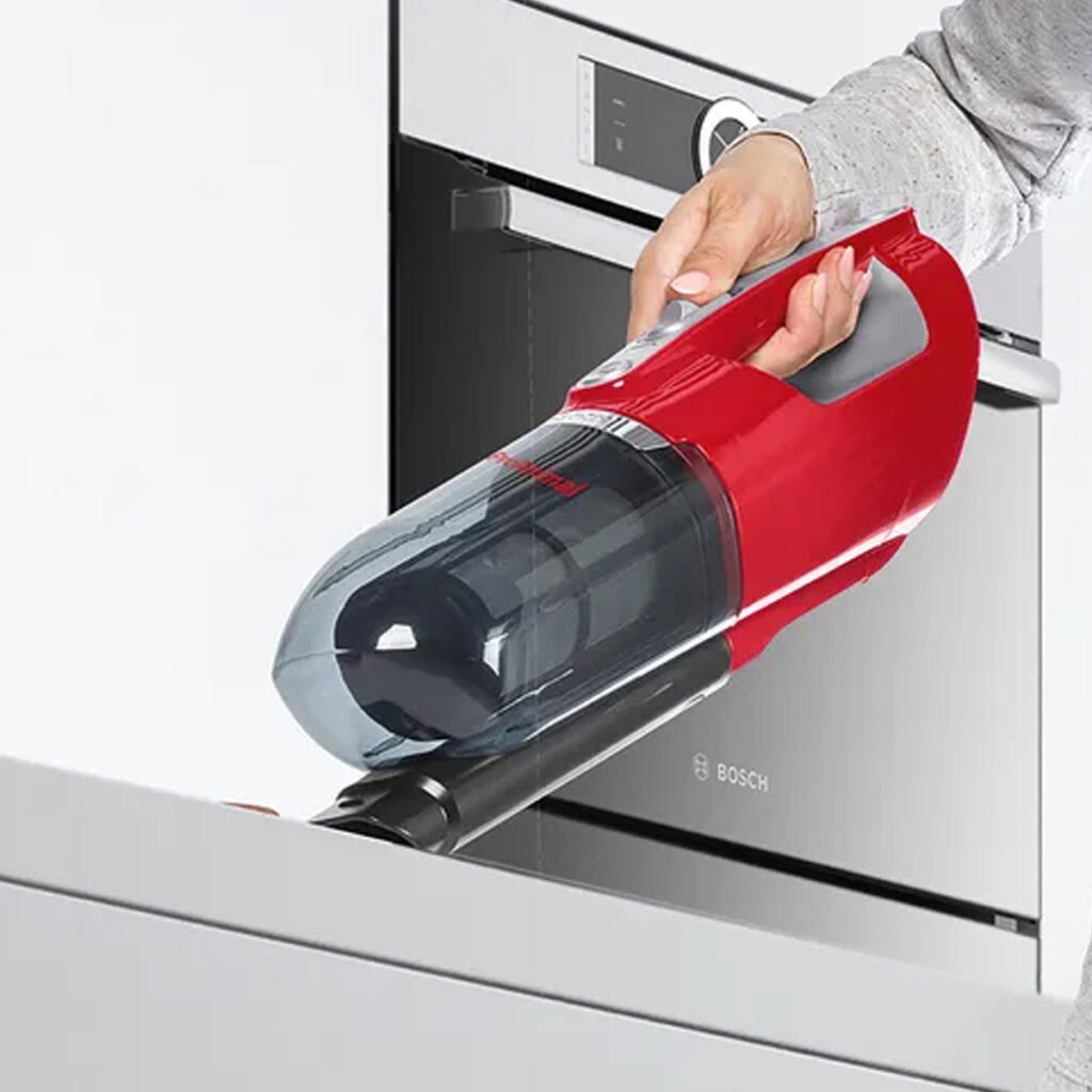 The Bosch BBH3ZOO25 Series 4 Handheld Vacuum Cleaner is a lightweight, rechargeable vacuum that features powerful suction and a 2-in-1 design, easily converting from a stick vacuum to a handheld device for versatile cleaning.