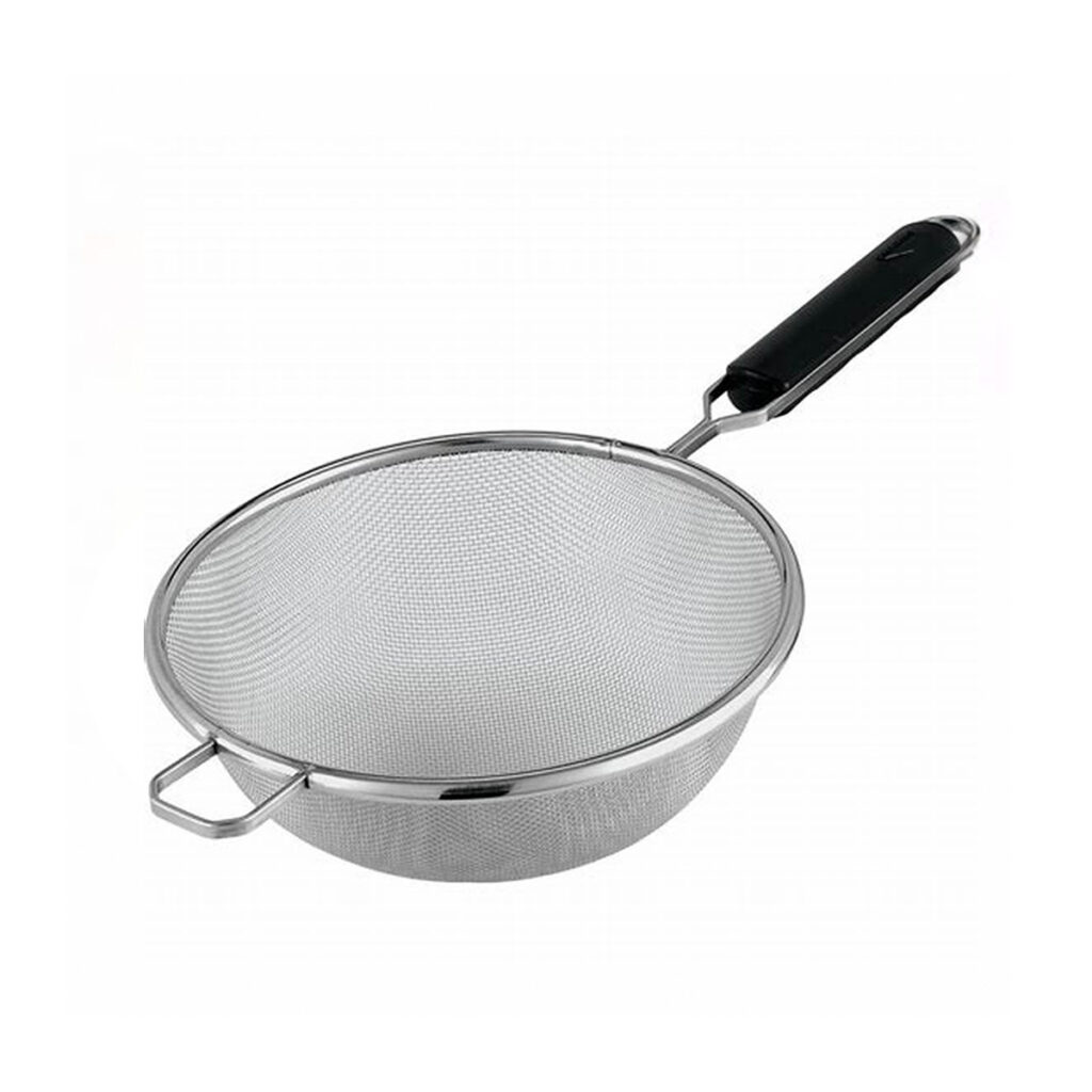 Classic multi-purpose heavy-duty single fine mesh strainer with robust plastic handle and support grip bar for added stability and handling. Durable stainless steel frame ensures this strainer can withstand the harsh and continuous use in a commercial service kitchen.