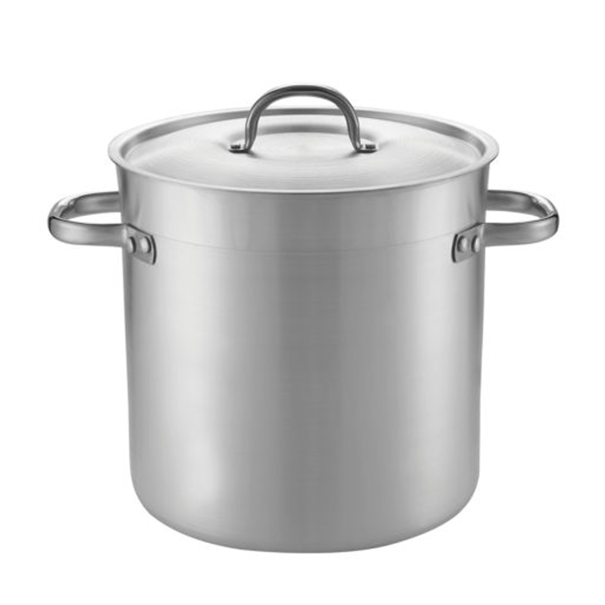 Available in various sizes, this Infinity stockpot with lid is perfect for cooking large meals. Quick to heat, its robust aluminium construction makes it ideal for the service industry.