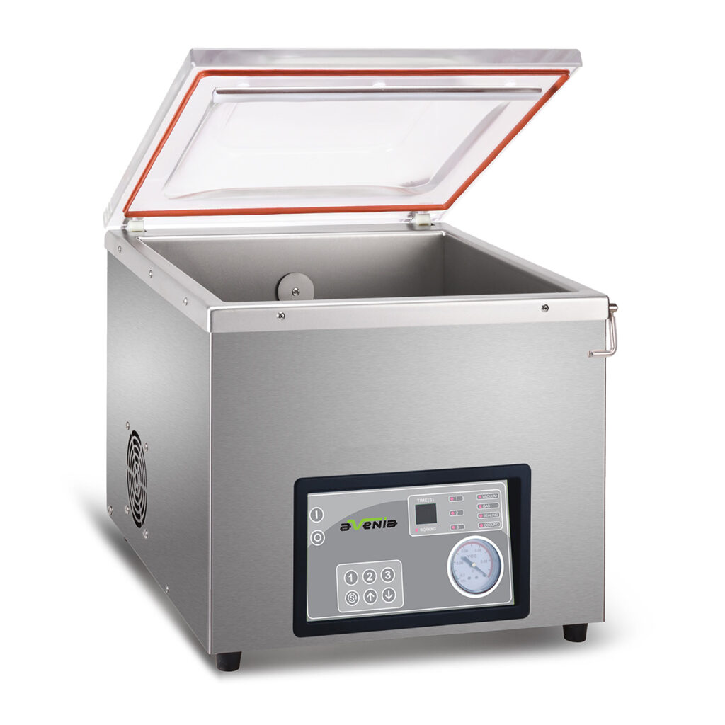 The new Vacuum Pack machines by Avenia are designed for commercial kitchens with fast production and effortless ease of use. The vacuum pack machine is ideal for prolonging the storage life of a range of food products with its powerful oil-lubricating vacuum pump. The machine has a chamber construction, designed to facilitate the insertion of bags and features a PLC control of vacuum and sealing time. This stainless steal structure and robust lid hinges offer extra support and durability during use.