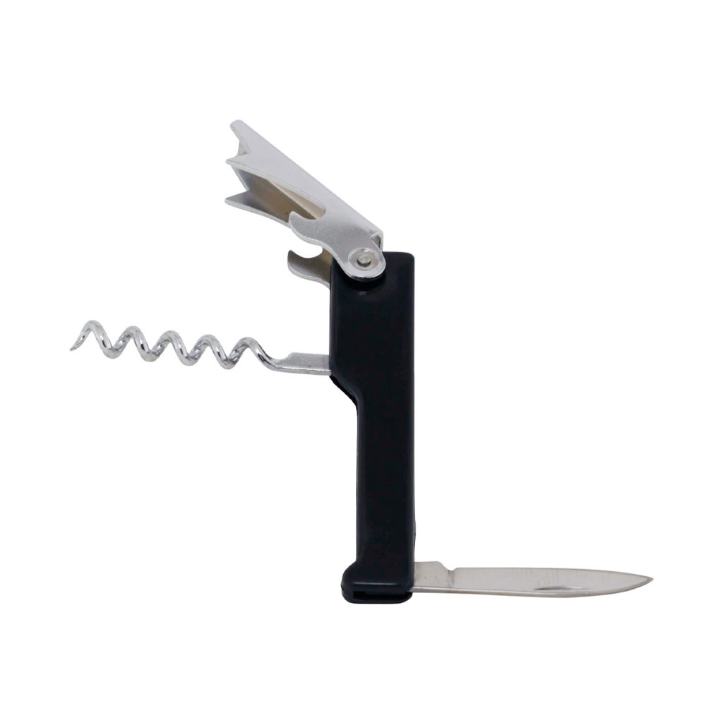 - Polished stainless steel corkscrew, opener and mini serrated knife