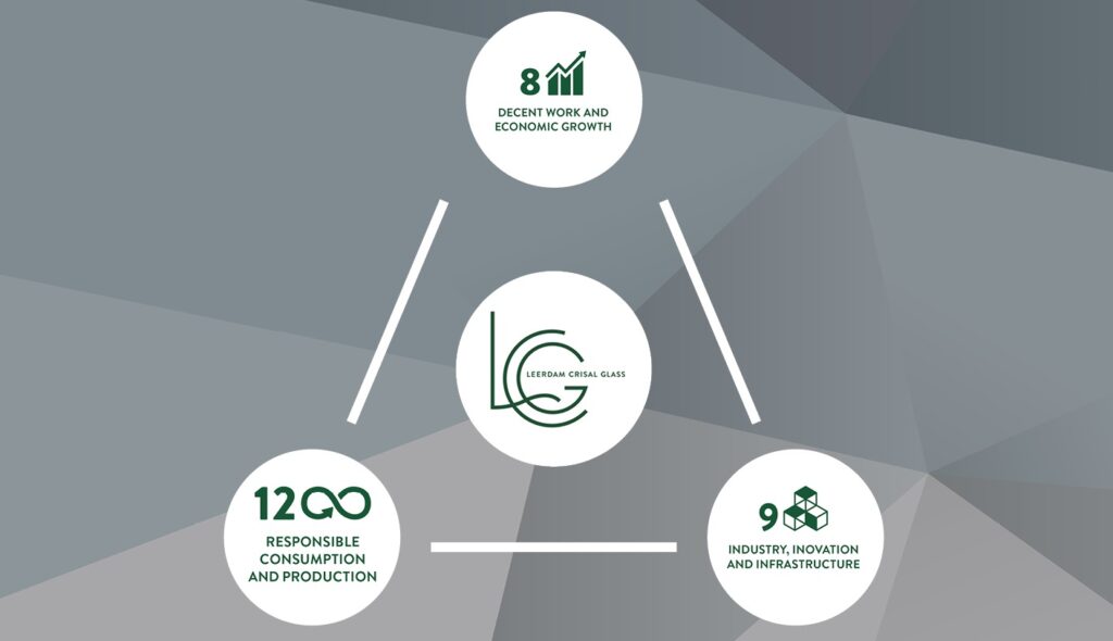 Leerdam Crisal Glass has released it’s first “Sustainability Update”, highlighting their efforts in ESG (Environmental, Social and Governance). LCGlass aligns their efforts with the three SDG’s (United Nations Sustainability Goals), by incorporating the following sustainable practices into their manufacturing process: