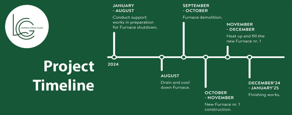 Leerdam Crisal Glassware plans on starting the new Oxyhybrid Furnace at the end of the year, a flexible concept incorporating electric power, natural gas, and potential hydrogen applications. Additionally, this new furnace will use a new form of technology, which not only allows the addition of green energy through the consumption of hydrogen and pure oxygen but also significantly reduces the use of fossil fuels, such as natural gas. Consequently, this innovation will greatly contribute to their sustainability efforts and further advance their commitment to environmental responsibility.