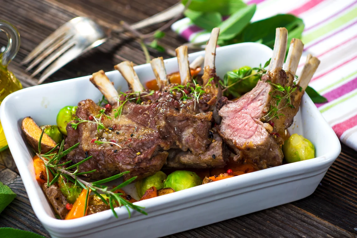 - Step 2: Place lamb on a large rimmed baking sheet and season all over with salt and pepper. Coat tops with herb rub and let sit at room temperature for 1 hour.